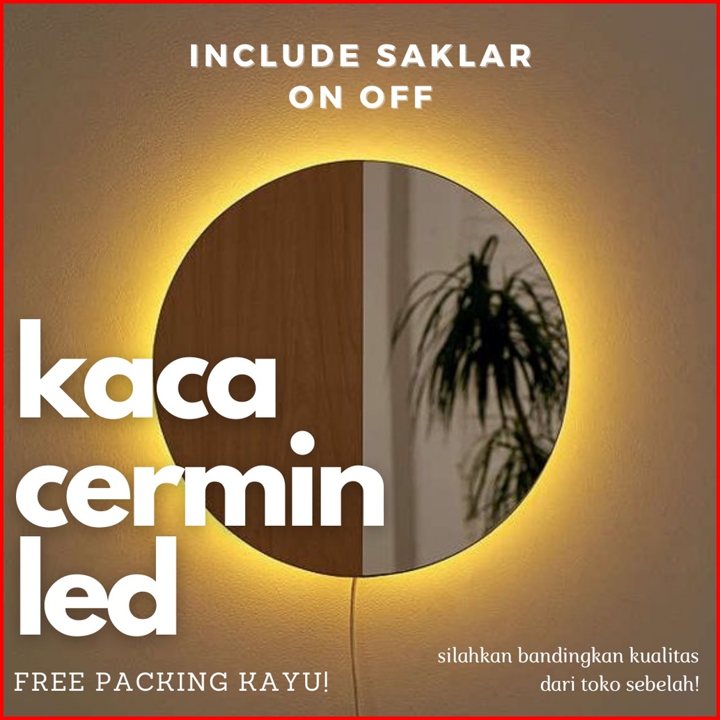 Cermin Bulat Led Besar Diameter 50cm 60cm Kaca Cermin Lampu Aesthetic Cermin Dinding Make Up Wastafel Mirror Led Lamp Ka