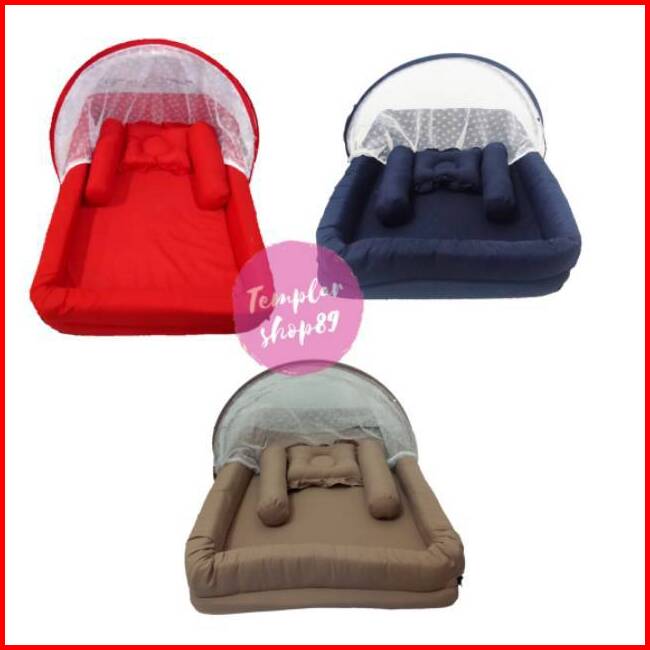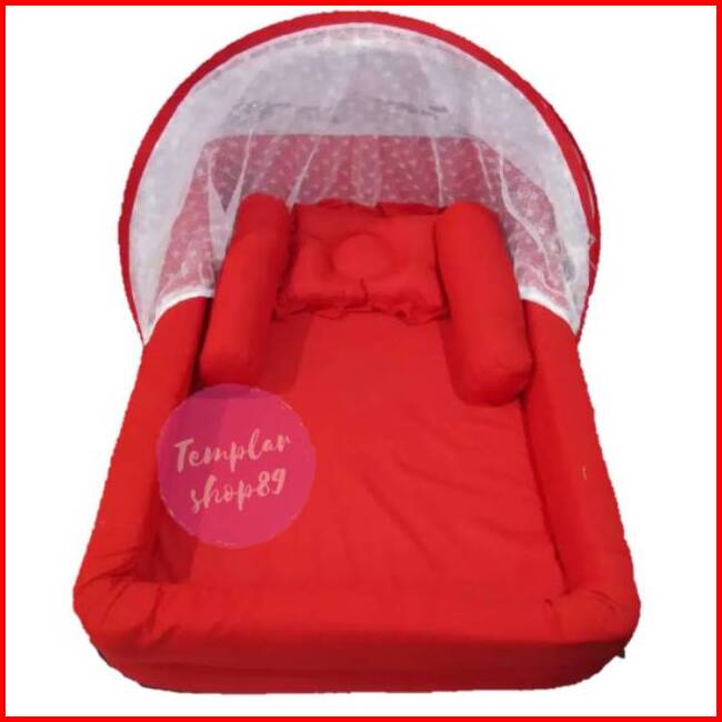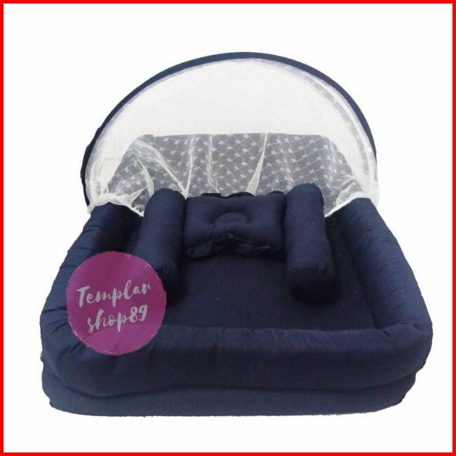 Kasur Bayi Set Kelambu Bantal Guling Kolam Warna Polos