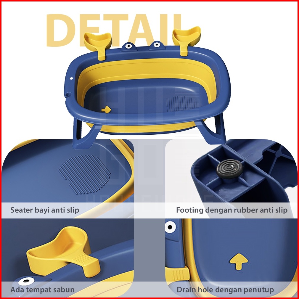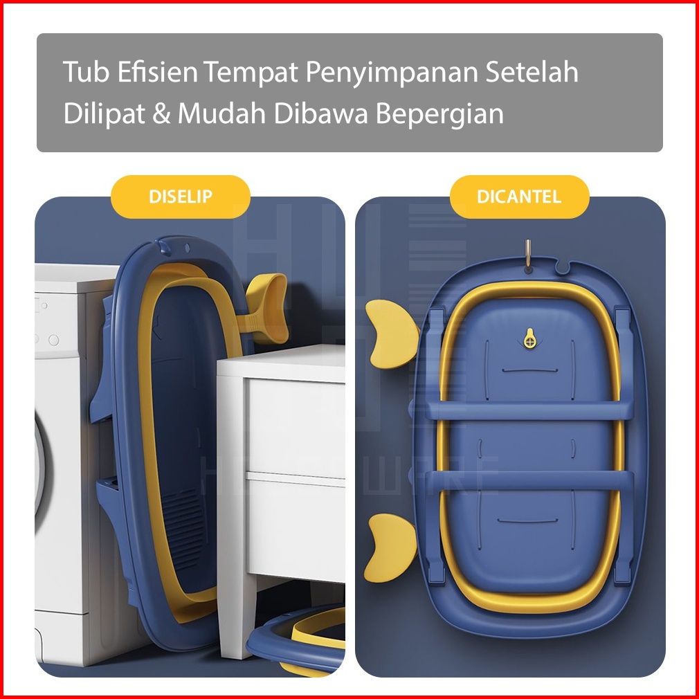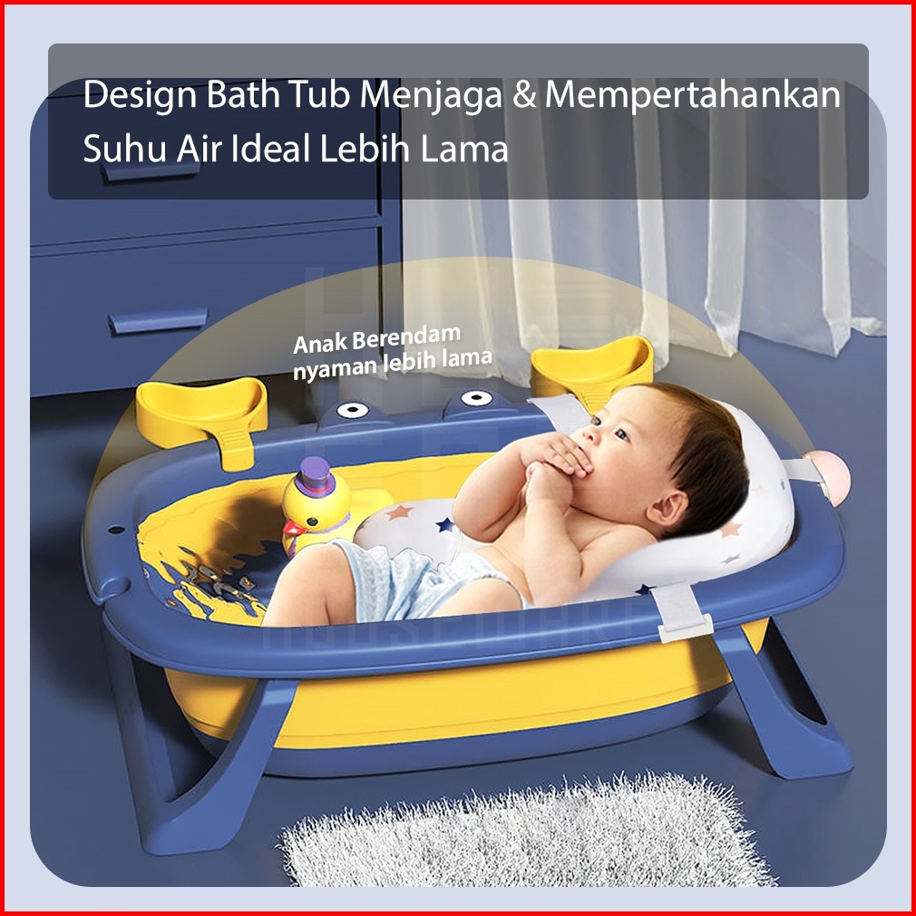 Hugo Tempat Mandi Bayi Portable Bak Mandi Bayi Lipat Serbaguna Foldable Baby Bath Tub Dengan Bantal Mandi