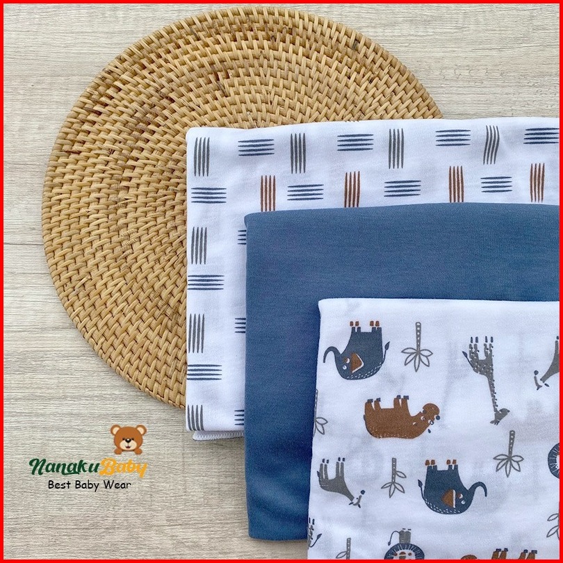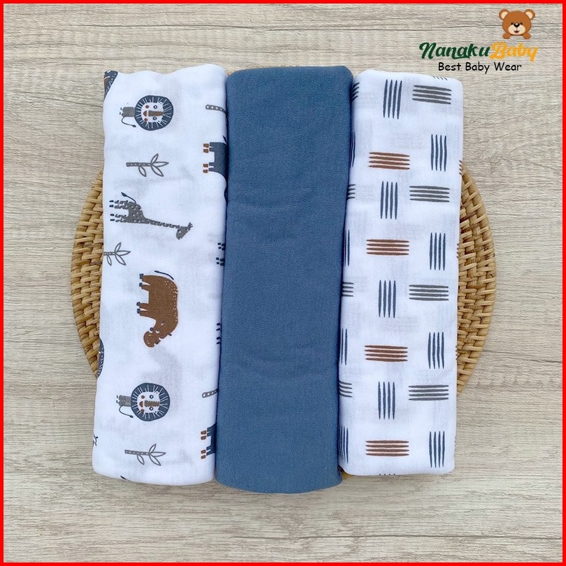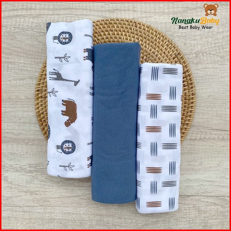 Nanaku Baby - Series Biru Denim Bedong Bayi Newborn Isi 3 Pcs Ukuran Jumbo 110x90 Cm Pernel Bayi Multifungsi