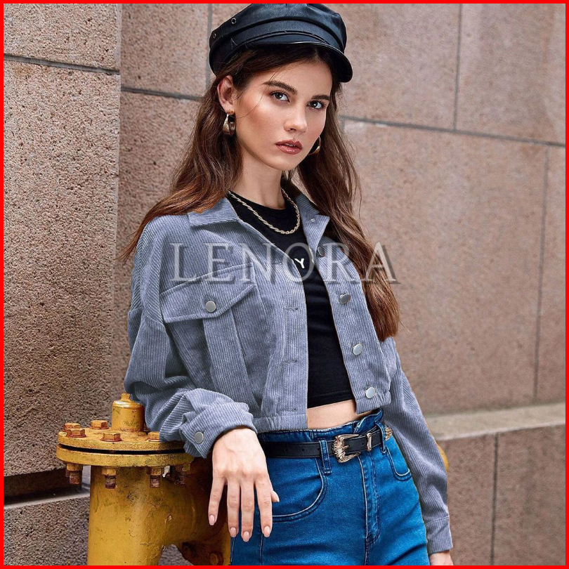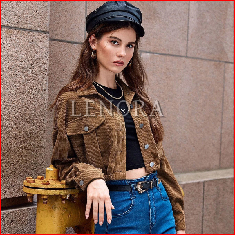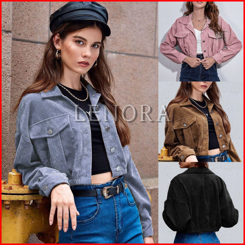 Kardigan Jaket Lengan Panjang Korduroi Longgar Vintage Wanita