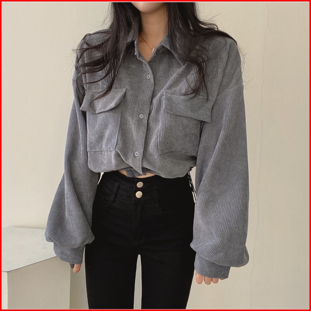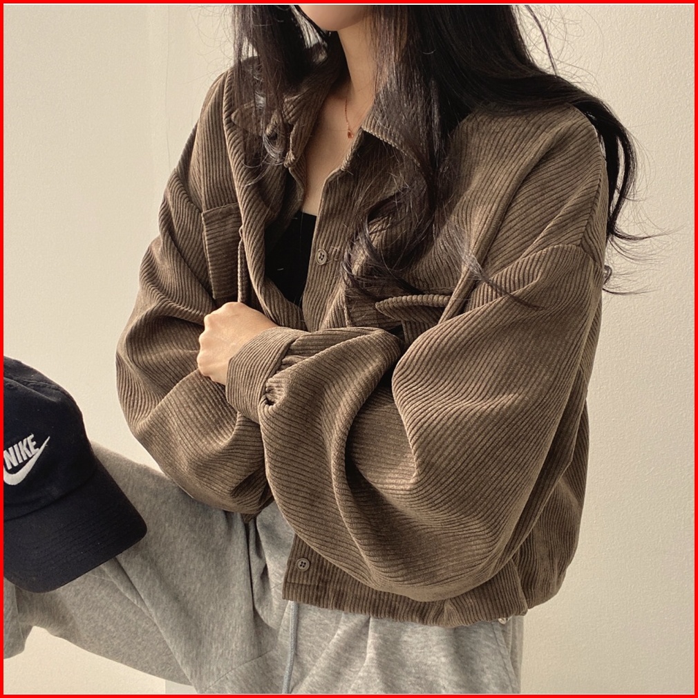Xiaozhainv Jaket Corduroy Wanita Korean Style Crop Top Lengan Panjang
