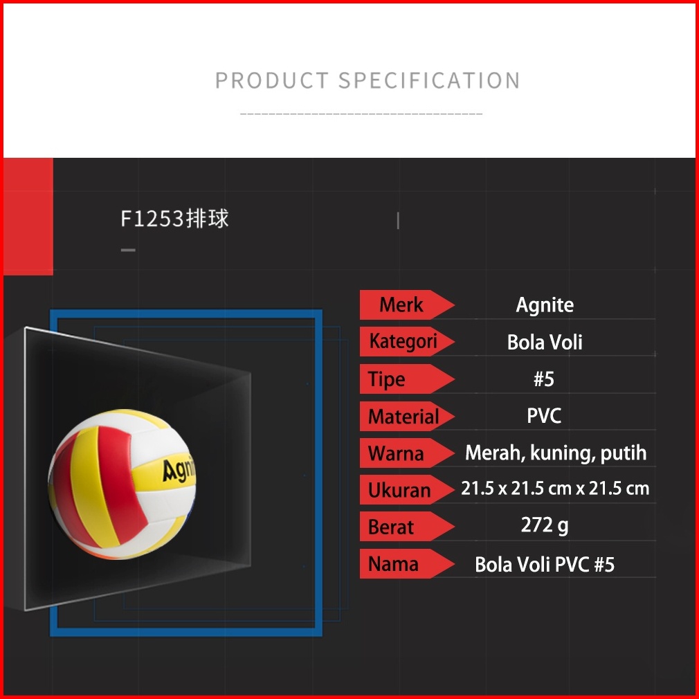Agnite Volleyball Bola Voli No 5 Pvc Indoor Outdoor High Quality F1253