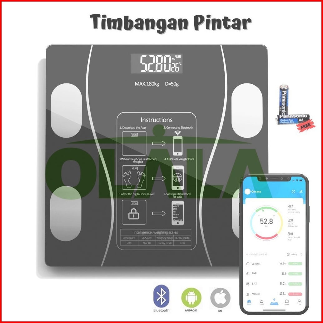 Codtimbangan Badan Digital Body Fat Monitor Analysis App 180kg Bluetooth Oll-ly2626