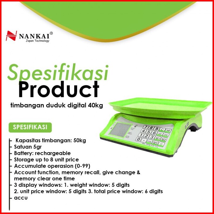 Nankai Japan Technology Timbangan Duduk Digital 40 Kg Satuan 5gr Art 177 - 16- Satuan Ukur 5gr Kelipatan Cocok Untuk Usa
