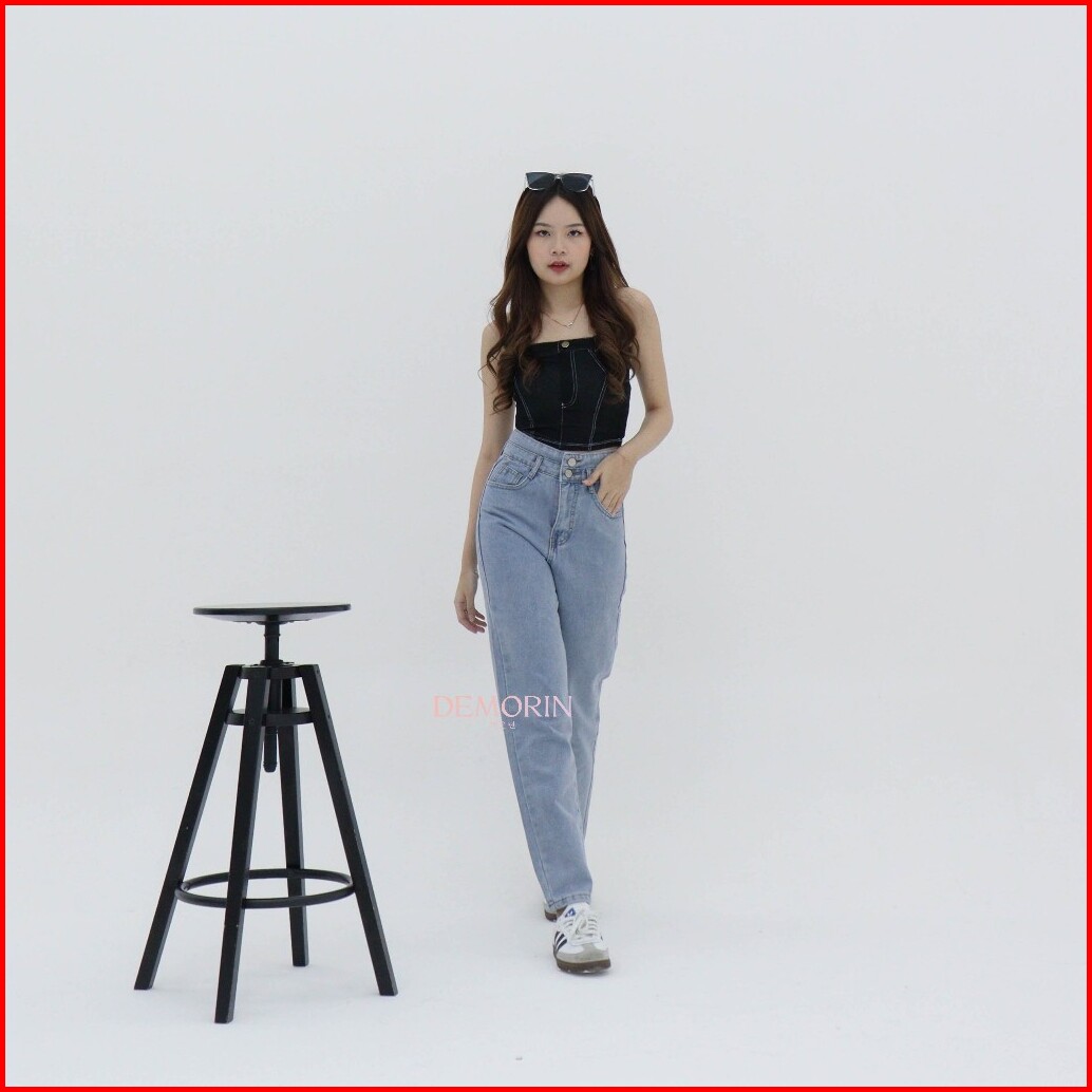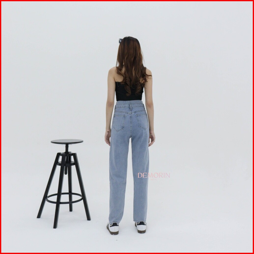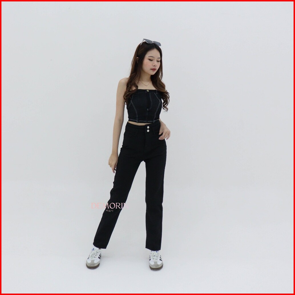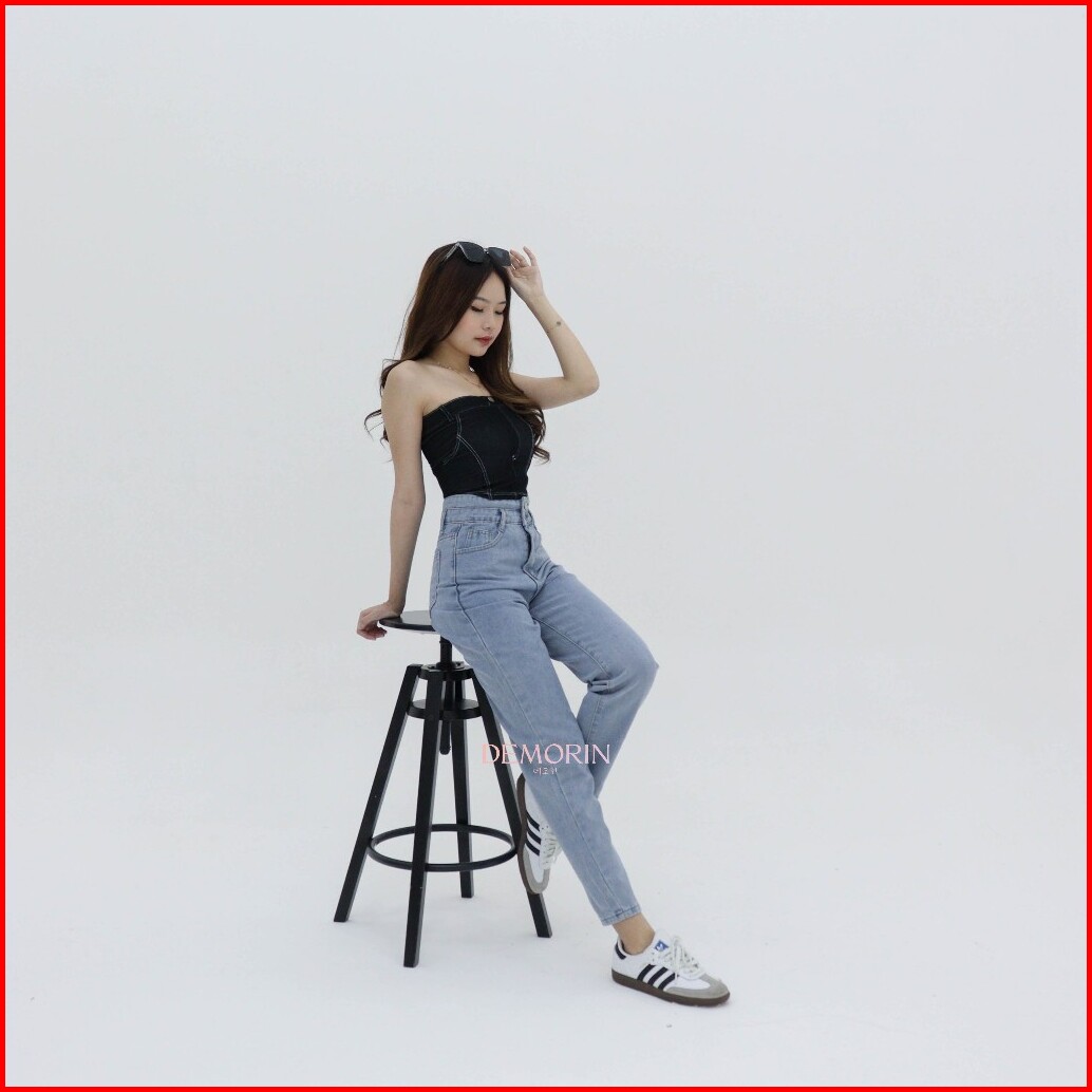 Demorin Celana Panjang Jeans Wanita Slim Fit High Waist Cewek Bahan Denim Lembut Model Boyfriend X25