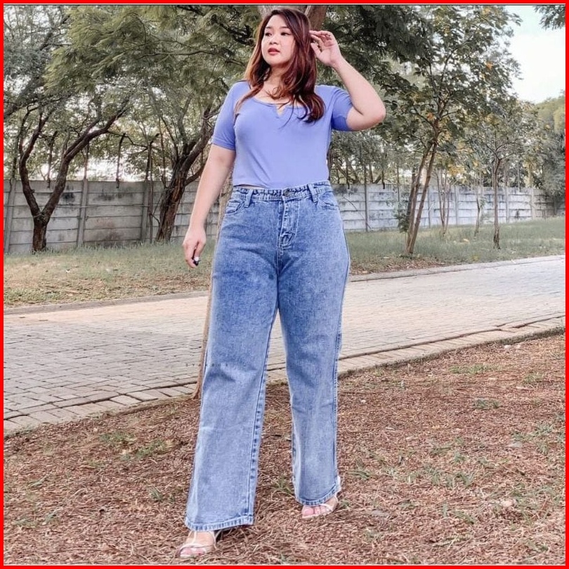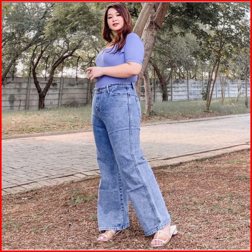 Kulot Jumbo Highwaist Jeans Wanita Loose Snow Jumbo Big Size 4l- 8l