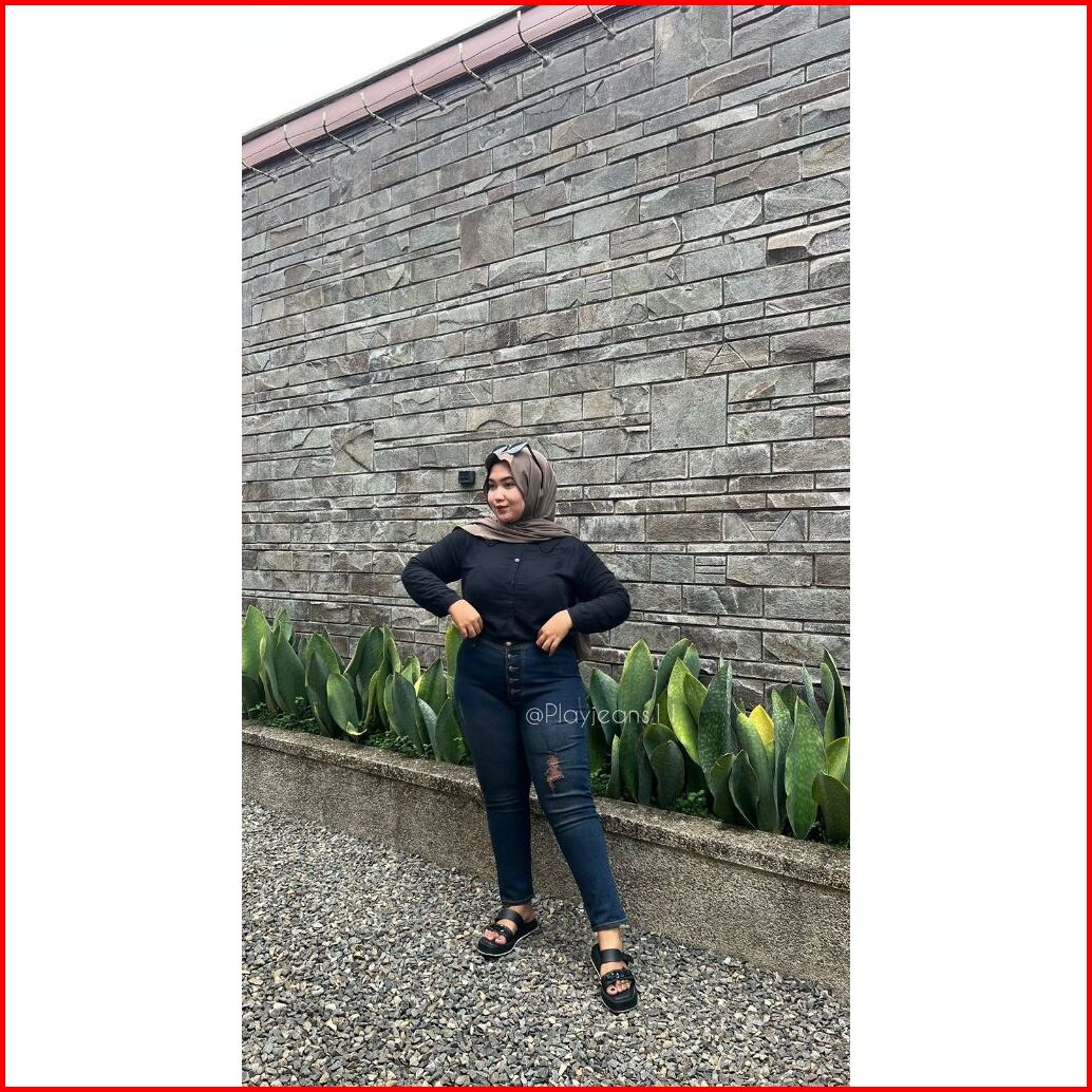 Playjeans Hayza Celana Highwaist Jeans Sobek Hight Waist Jeans Jumbo Celana Jeans Wanita Jumbo
