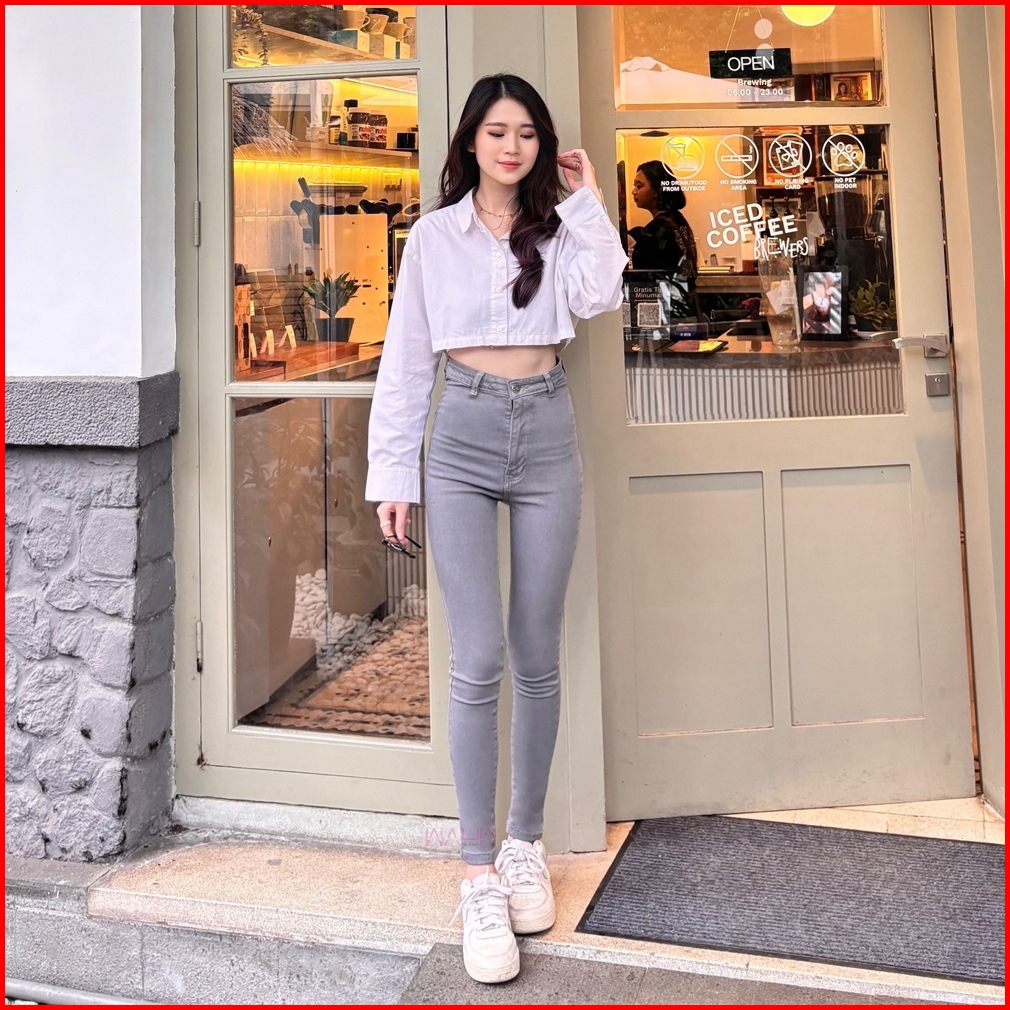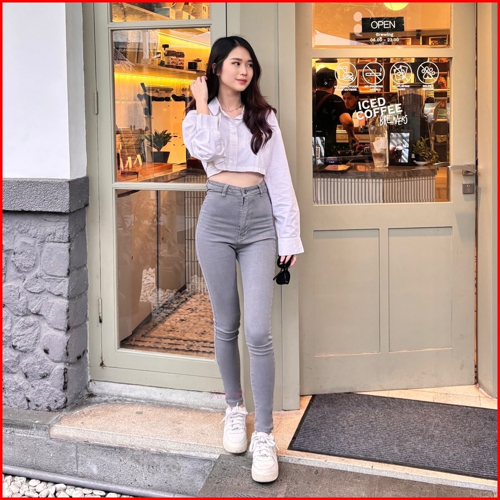 Wauw - Highwaist Skinny Soft Jeans 2100 Dark Grey Chooe