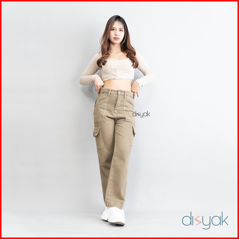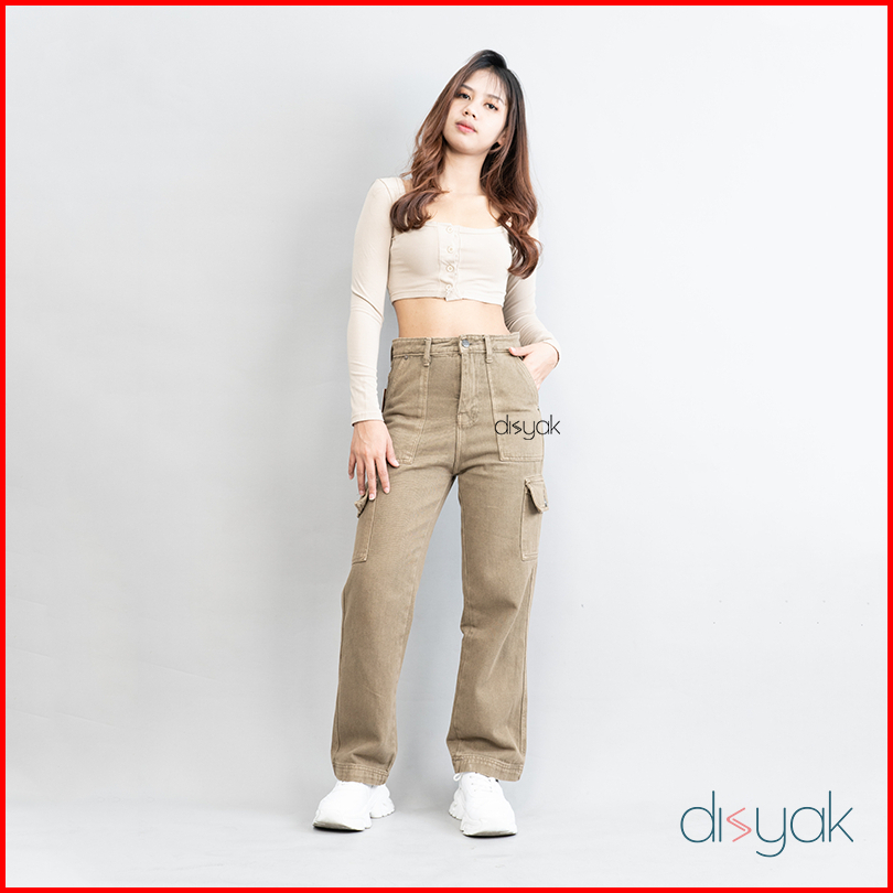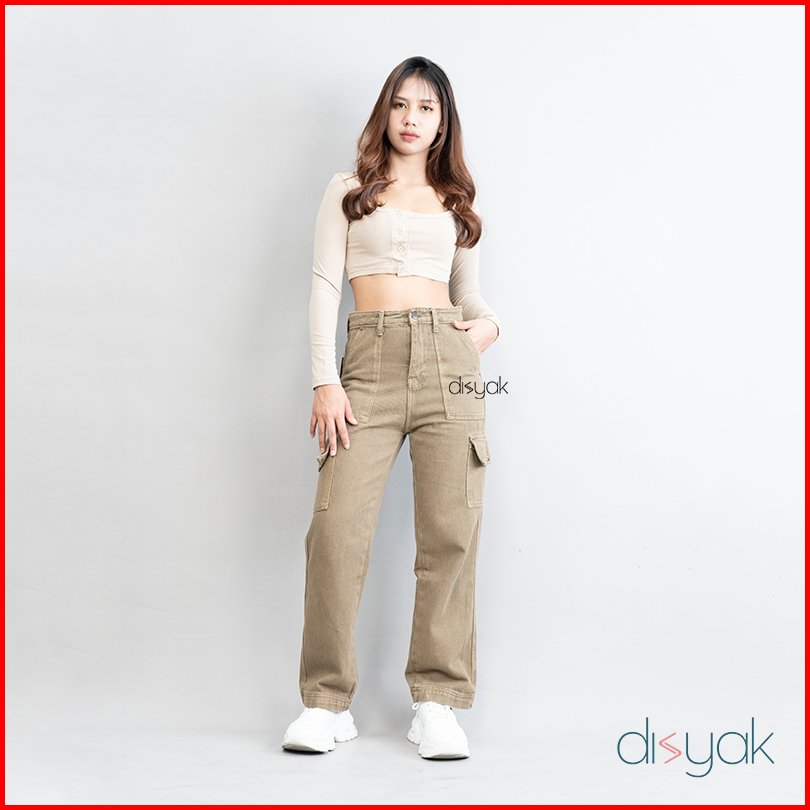 Disyak - Boyfriend Cargo Jeans Army Brown 714-814