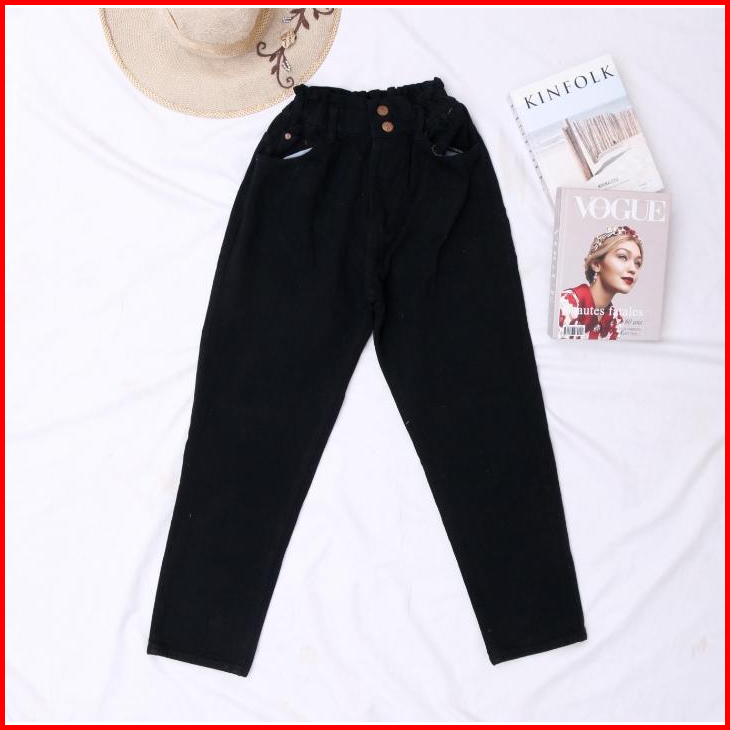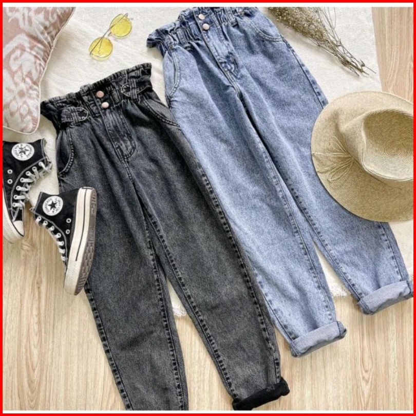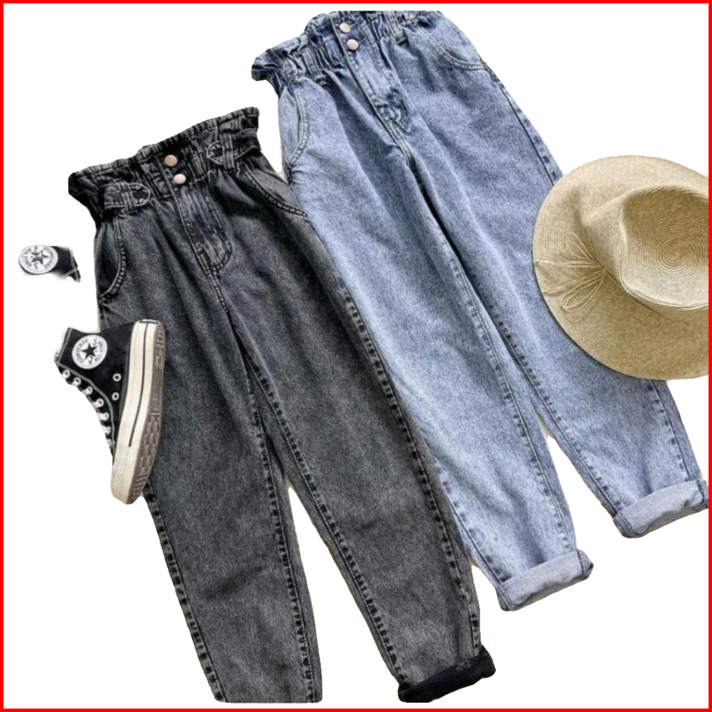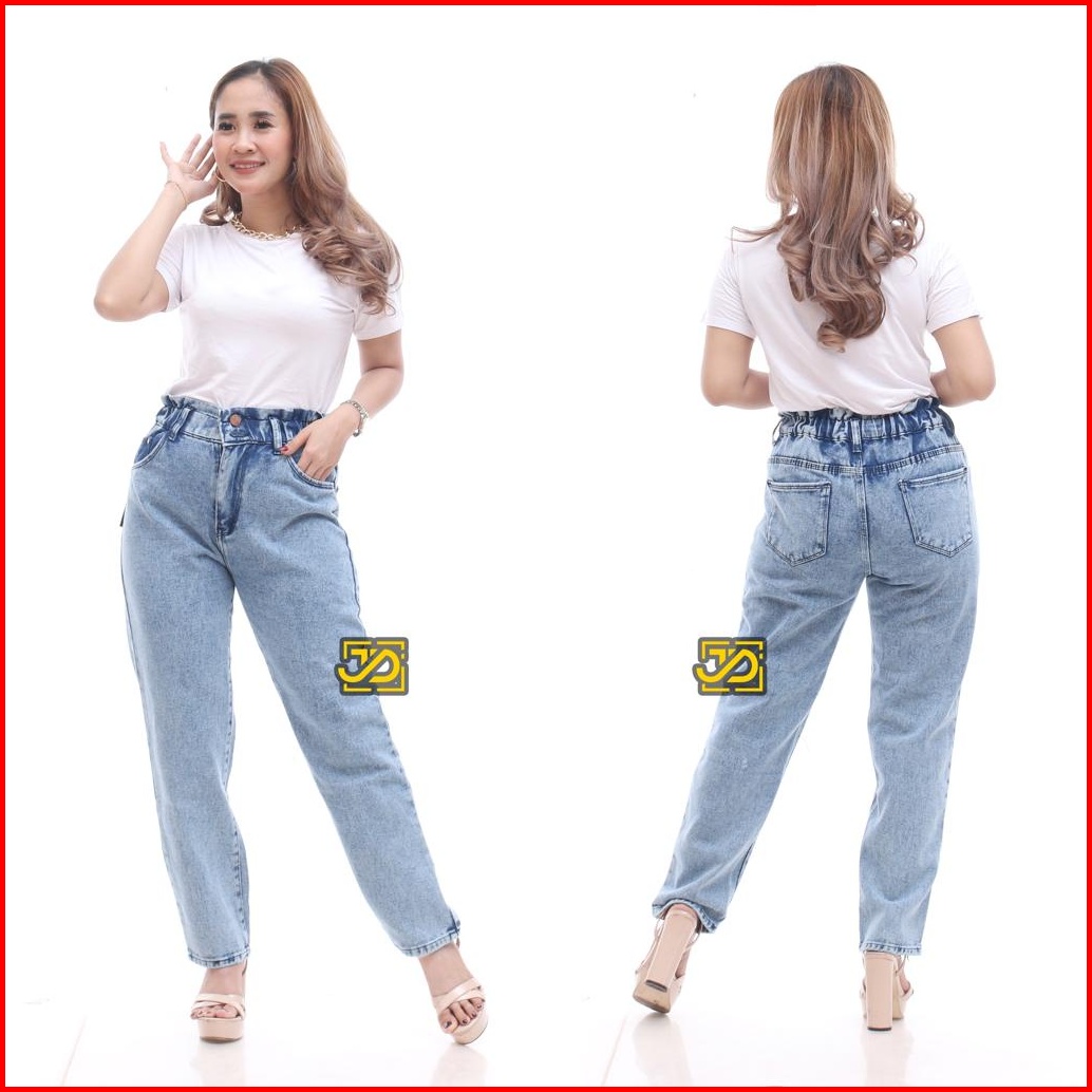 Boyfriend Karet Pinggang Jumbo Jeans Tebal 13os Big Size 27-42