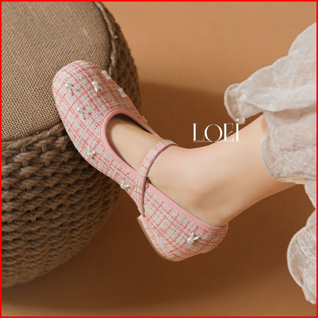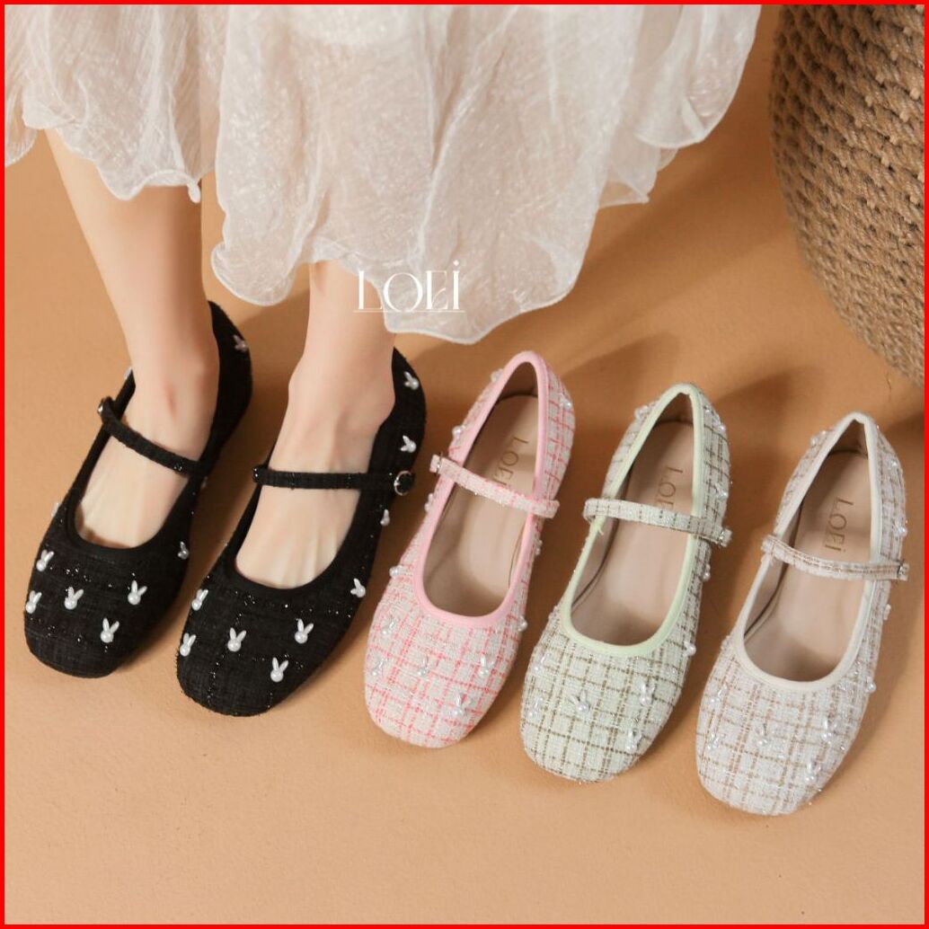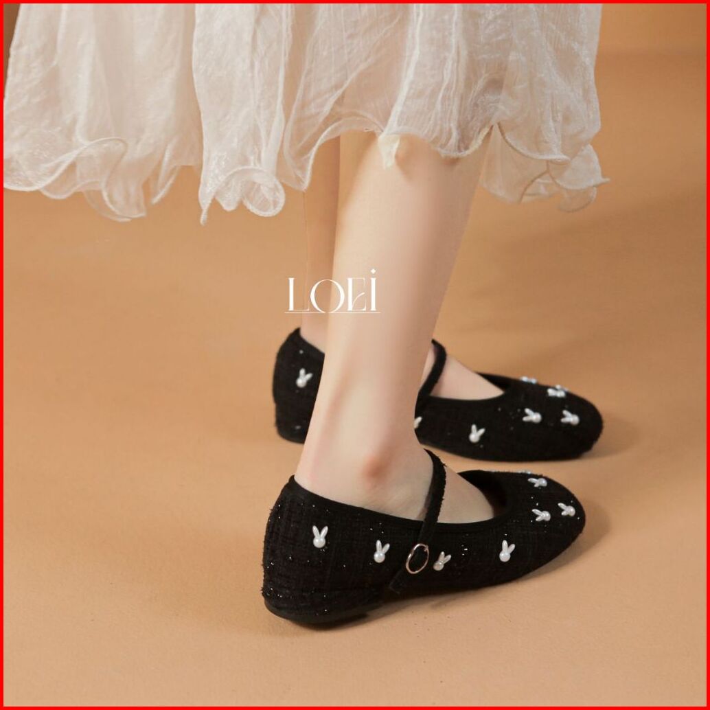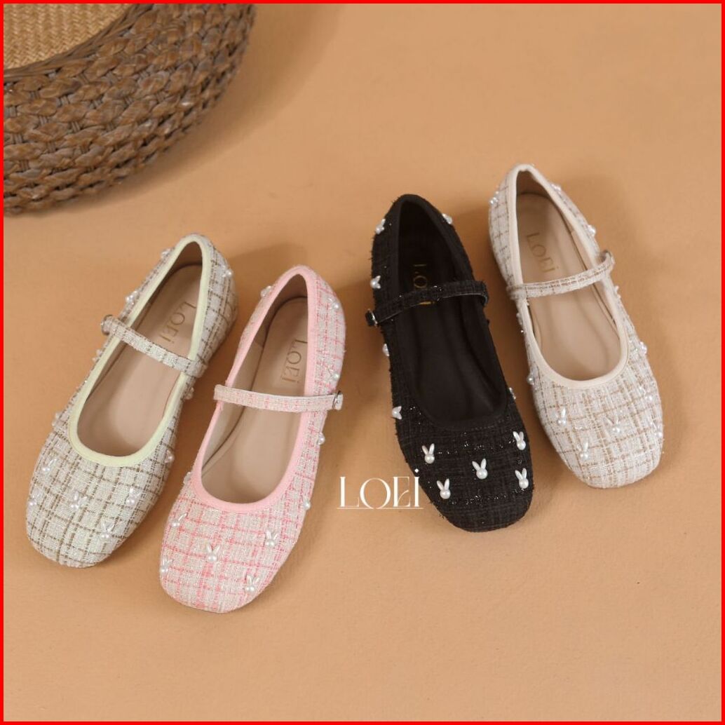 Sale Loei Winnie Flatshoes Wanita Sepatu Tweed Fashion Rabbit Pearl Korea Style 5423