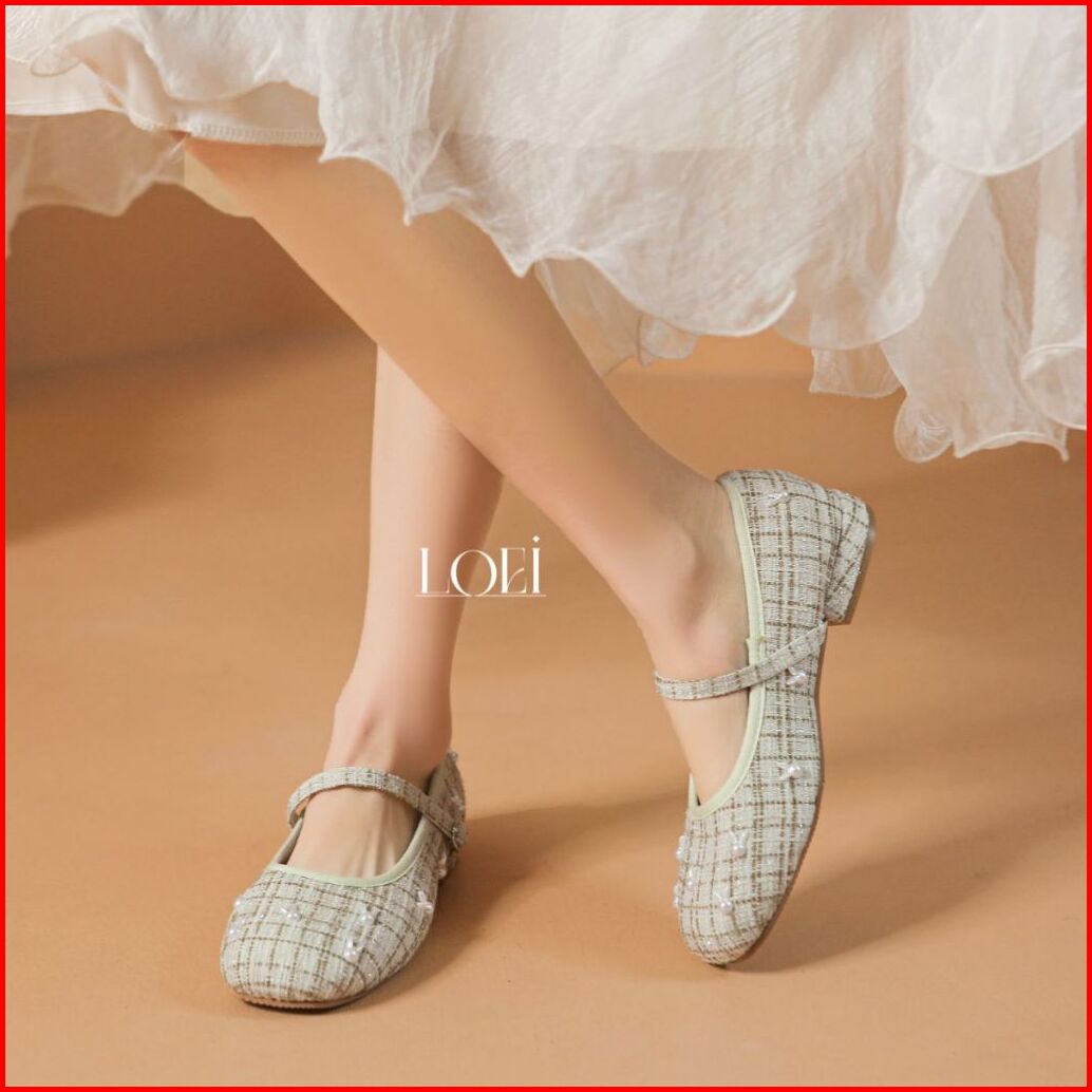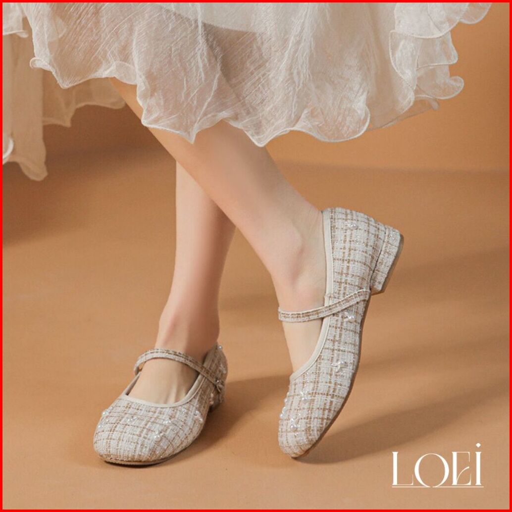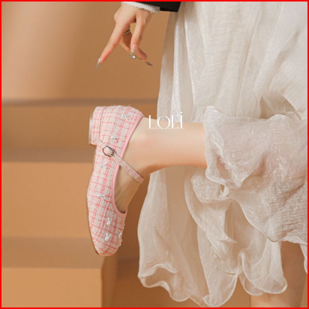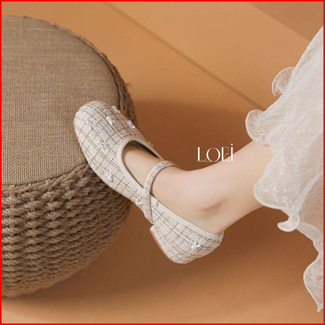 Sale Loei Winnie Flatshoes Wanita Sepatu Tweed Fashion Rabbit Pearl Korea Style 5423