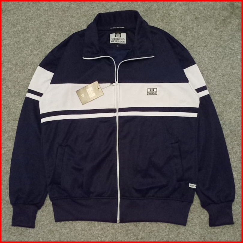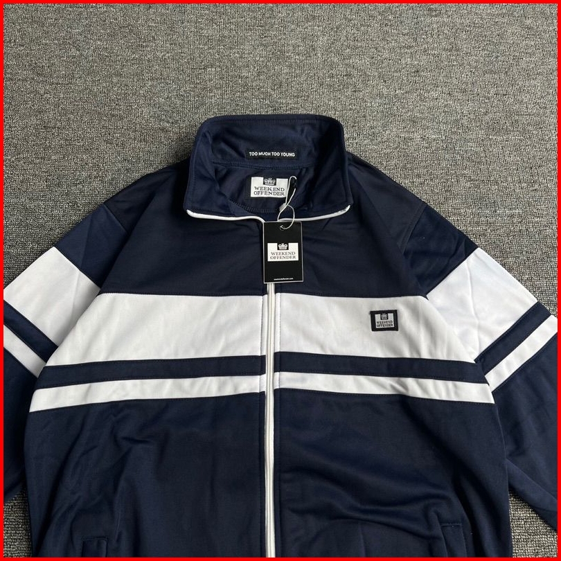 Jaket Tracktop Wo Navy Garis Putih Premium Jaket Kasual Pria Wanita