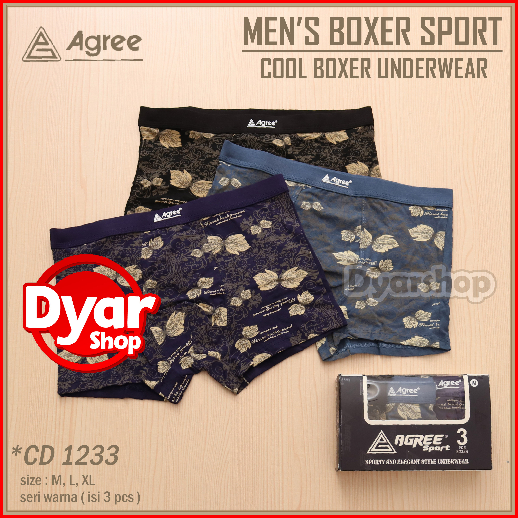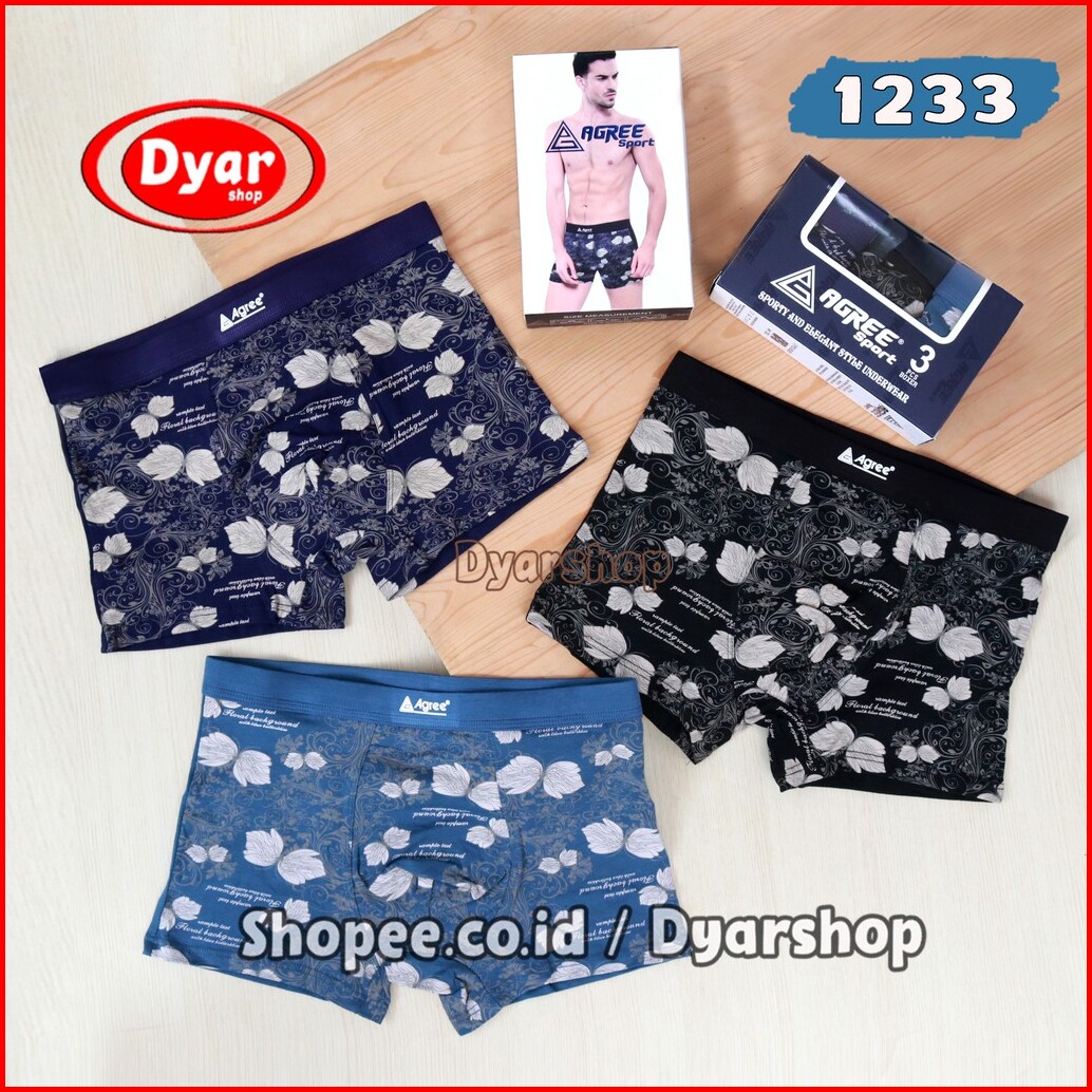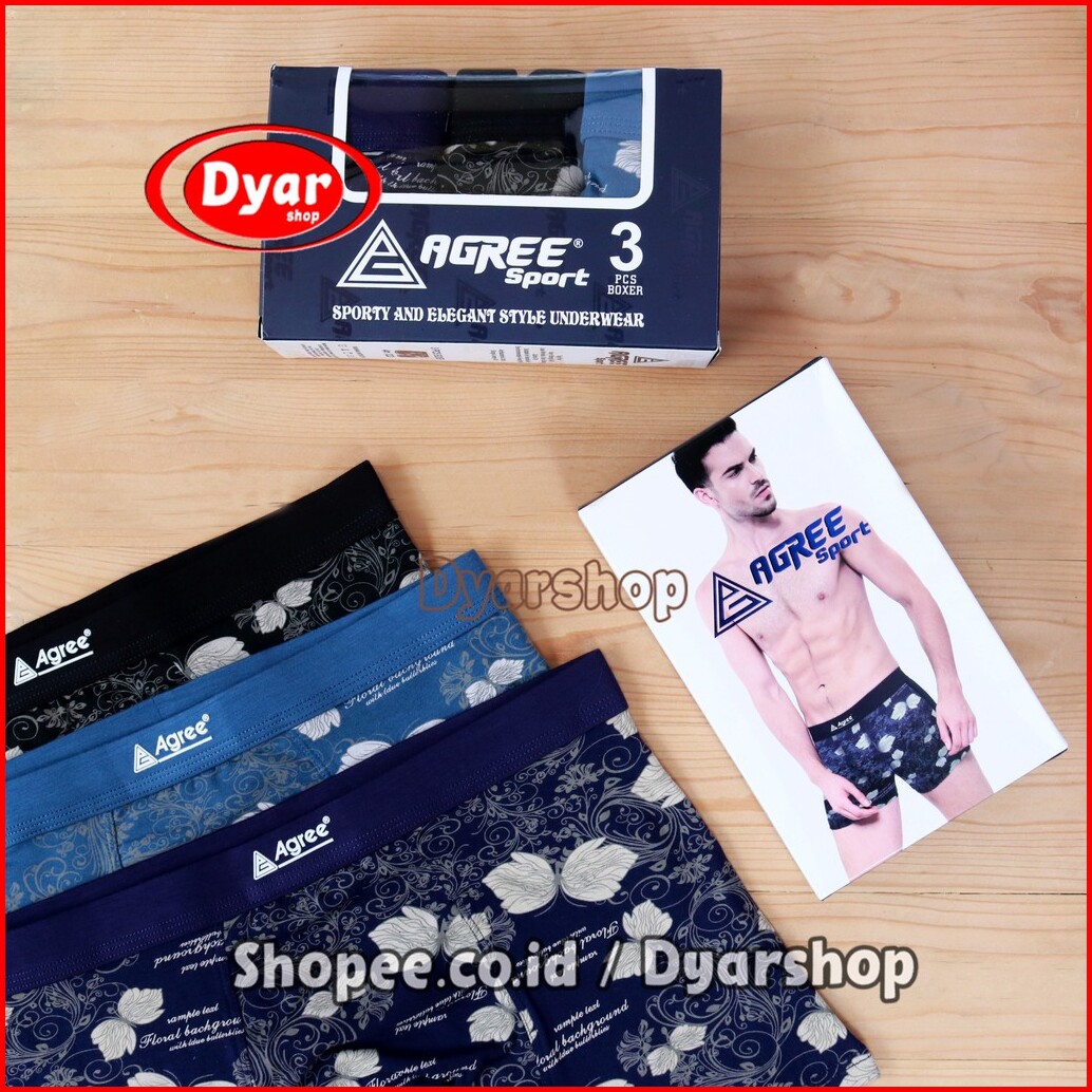 3pc Boxer Agree 1233 Celana Dalam Boxer Pria Agree Sport Berkualitas Boxer Agree - Dyarshop