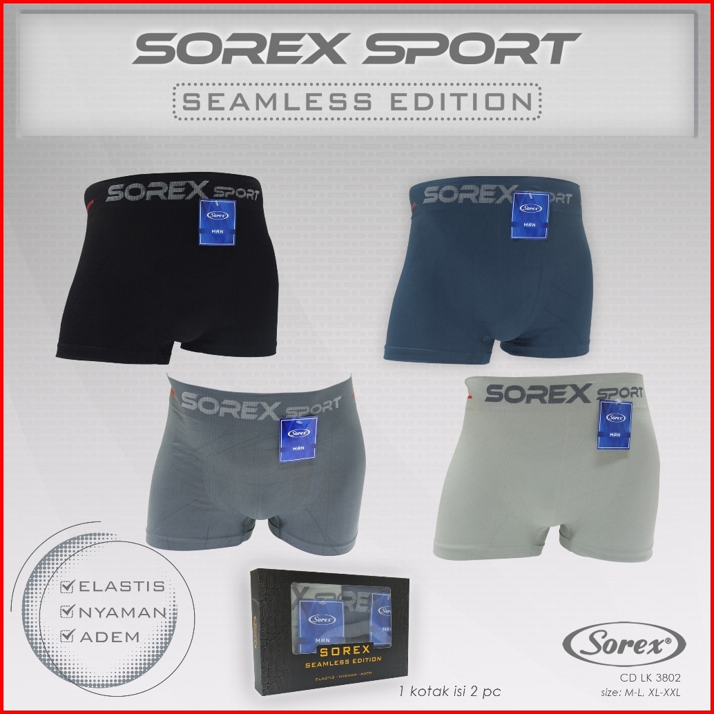 Boxer Sorex Pria M 3802 Seamless 1 Box Isi 2 Pcs Celana Dalam Pria Boxer Pria Rajut