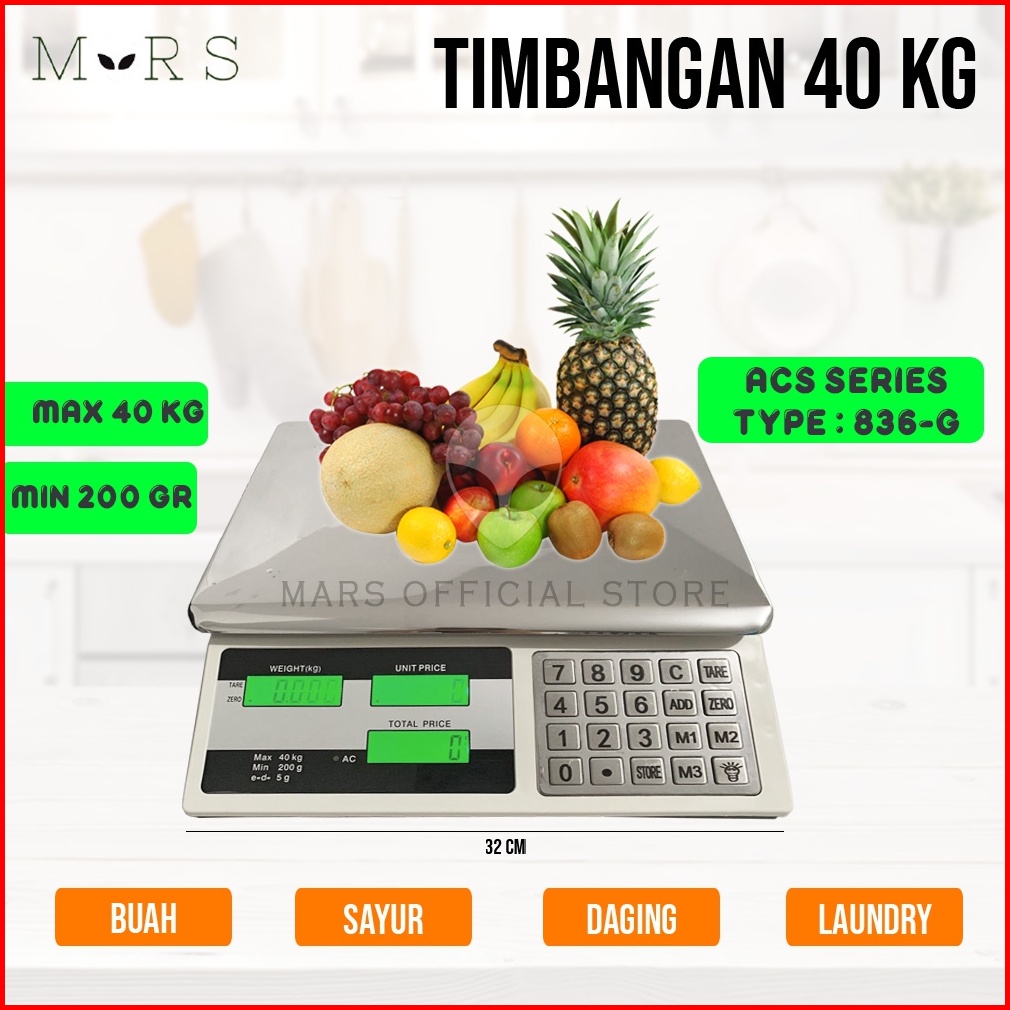 Acs - 836 836-g 40 Kg Timbangan Duduk Digital Elektronik Buah Acs 40 Kg 200 Gr Laundry Telur Sembako Electronic Kitchen