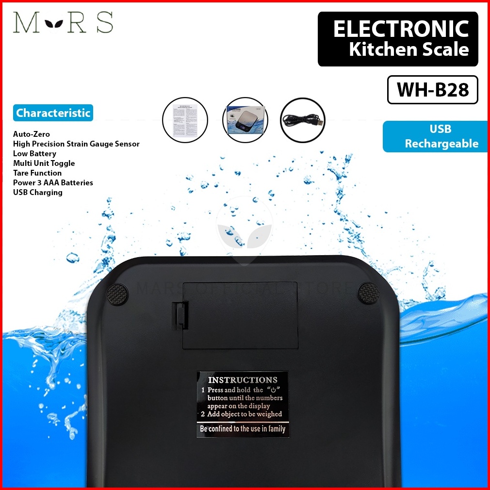 Wh-b28 Timbangan Digital Waterproof Charger Usb Tahan Anti Air Max 10 Kg 1 Gram Lcd Display Led Electronic Waterproof Da