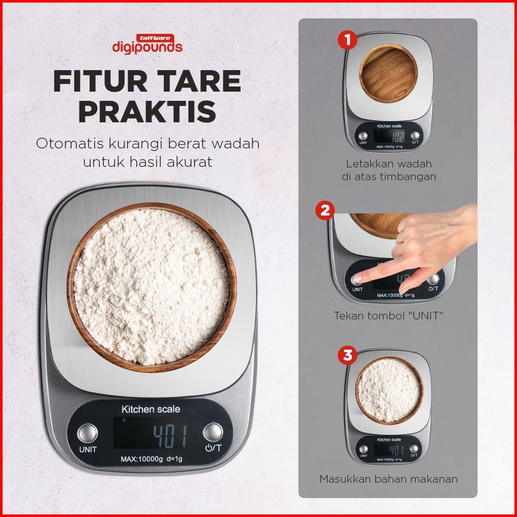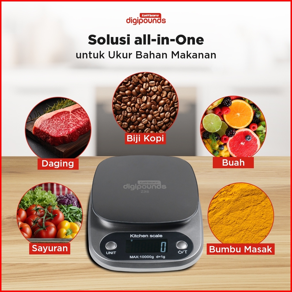 Taffware Digipounds Timbangan Dapur Digital Kitchen Scale 10kg 1g Z3s