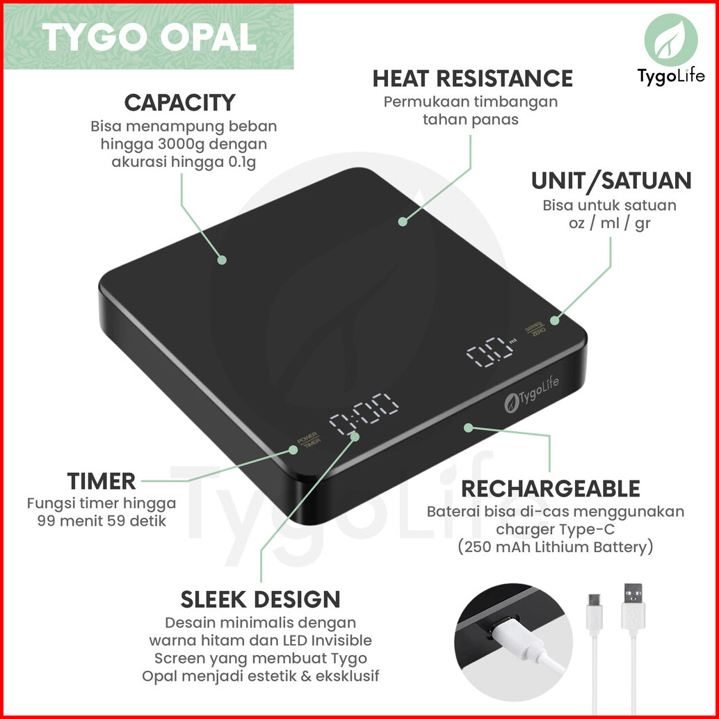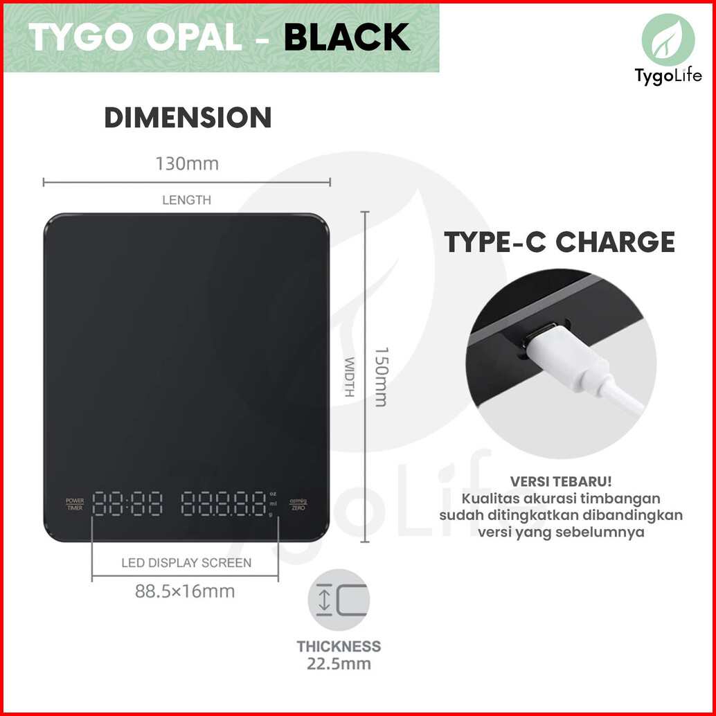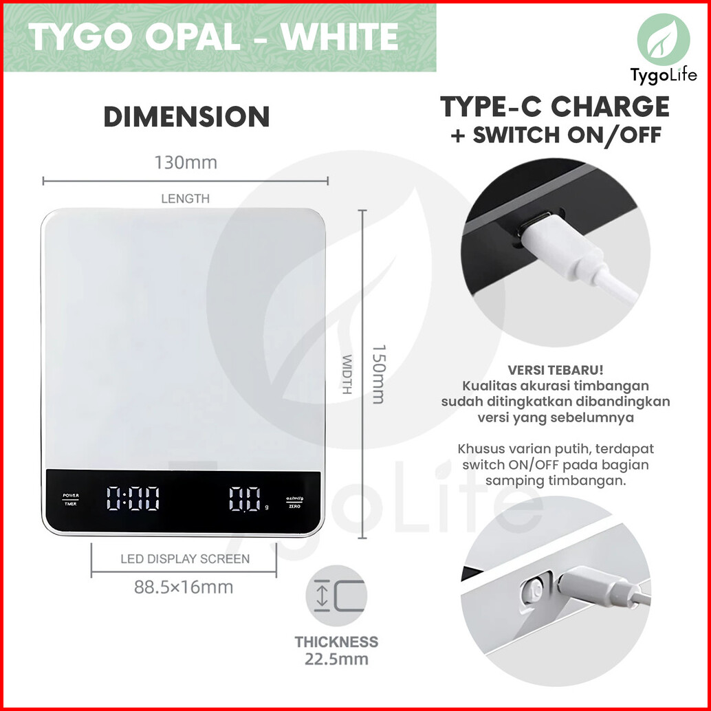 Tygo Opal Digital Coffee Scale With Timer V60 Drip Coffee Timbangan Digital Dapur Kitchen Kopi
