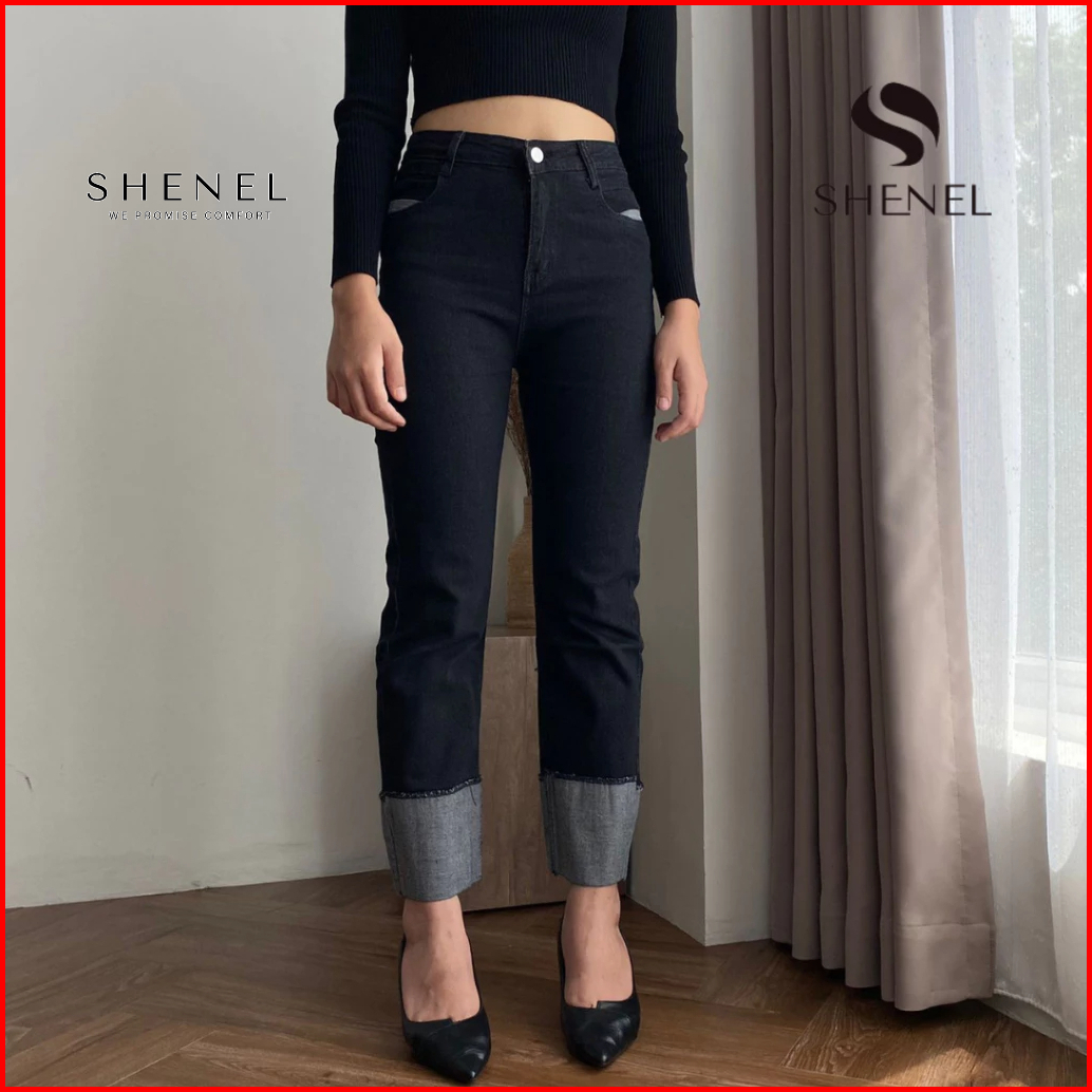 Shenel Hailey Jeans Celana Jeans Wanita High Waist Kulot Jeans Trending Stretchy Jeans Retro Skinny High Waist Import