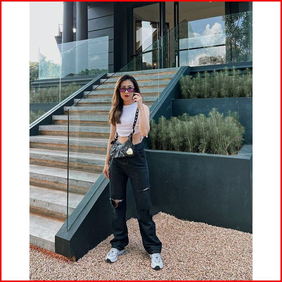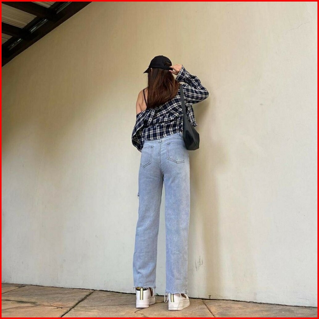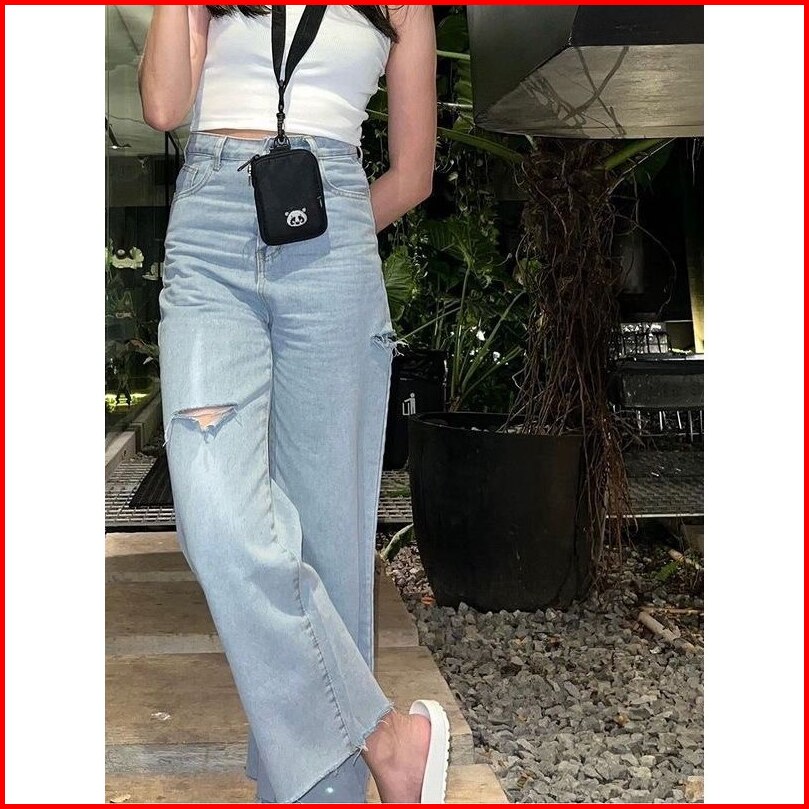 Highwast Kulot Jeans Wanita Sobek Lutut Paha Kaki Unfinised Kulot Jeans Wanita Terbaru Korean Luck