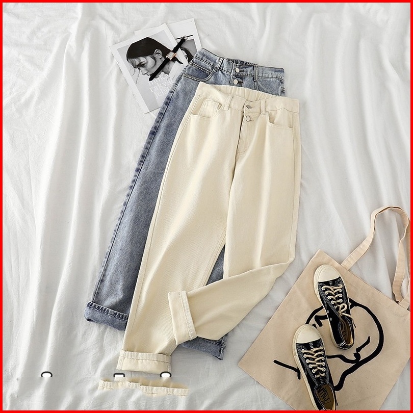 Xiaozhainv Jeans Kasual Longgar Gaya Korea Semua Cocok Untuk Wanita Boyfriend Jeans Wanita Celana Cargo Wanita Celana