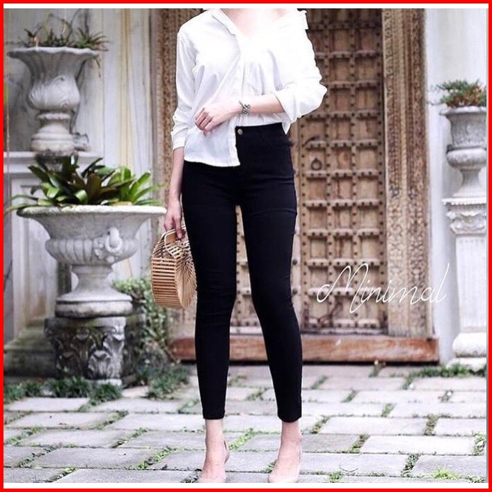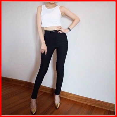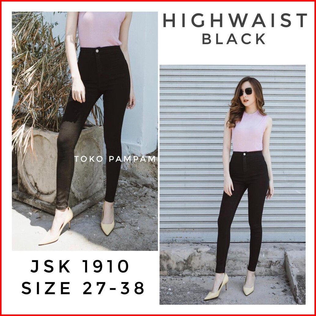 Celana Jeans Wanita Hitam Highwaist Korean Style Stretch Jumbo Jsk 1910