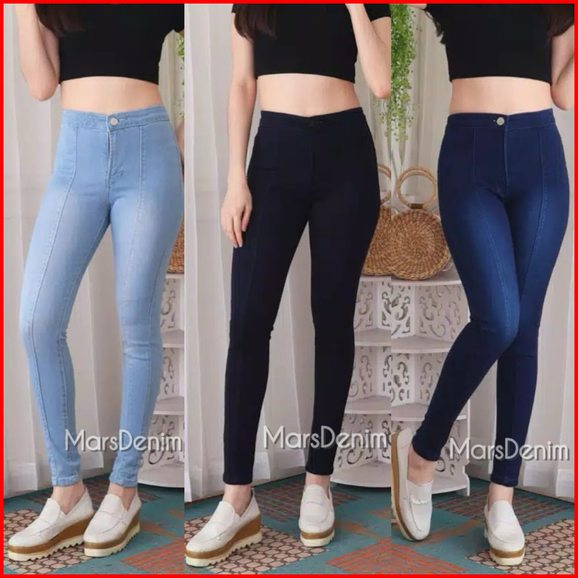 Celana Jeans Highwaist Tulang Front Line Wanita Cewek