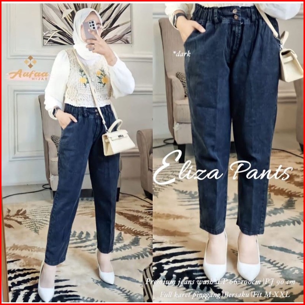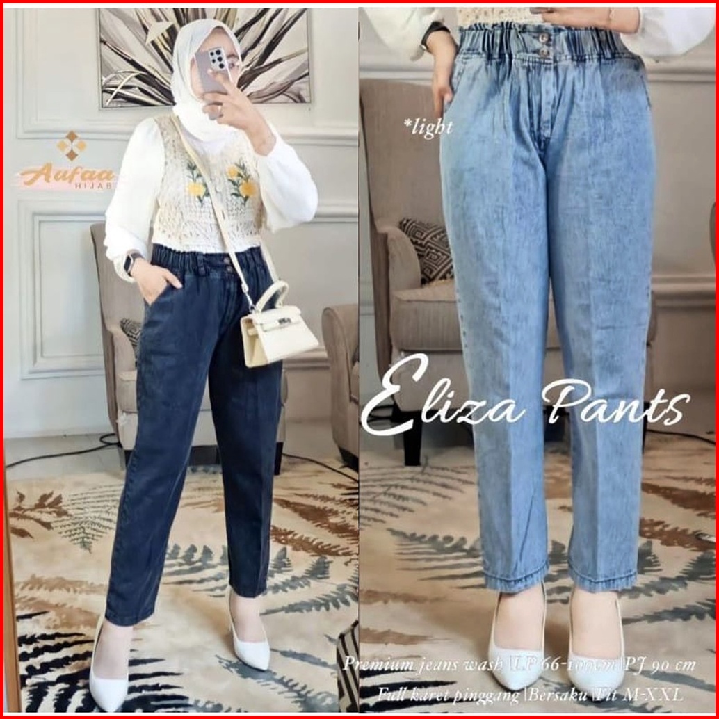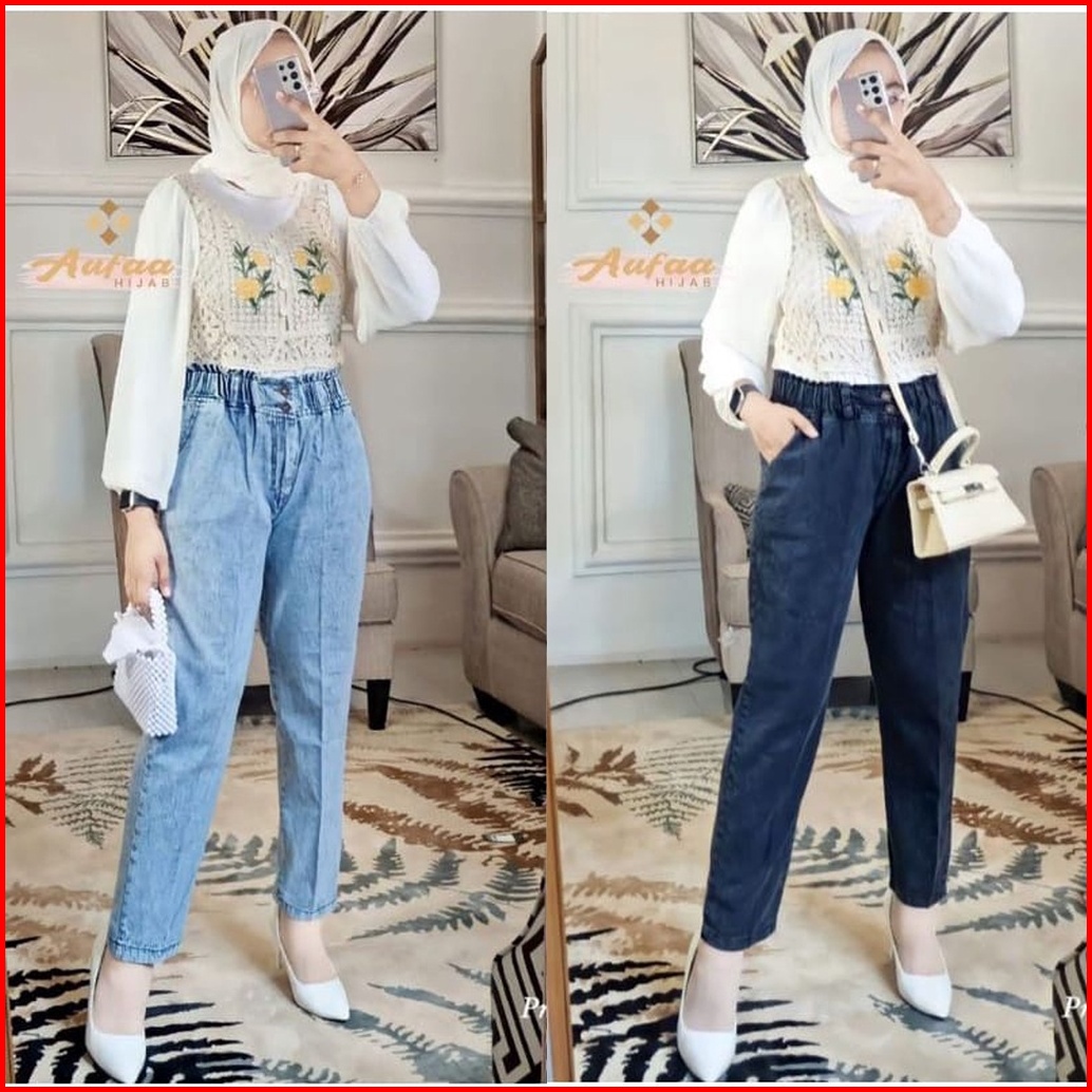 Moonfaza - Celana Baggy Jeans Boyfriend Wanita Resleting Cewek Fashion Style Kekinian Eliza Pants