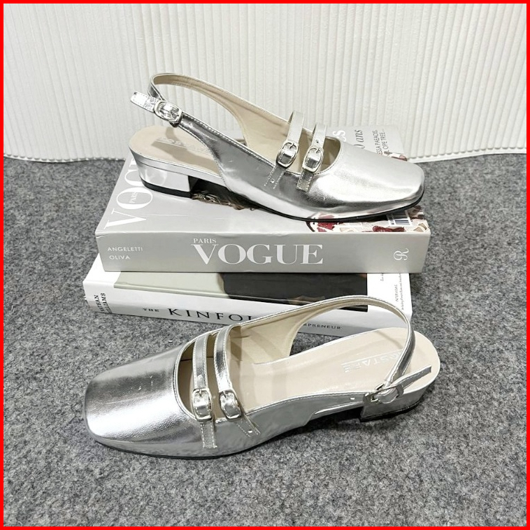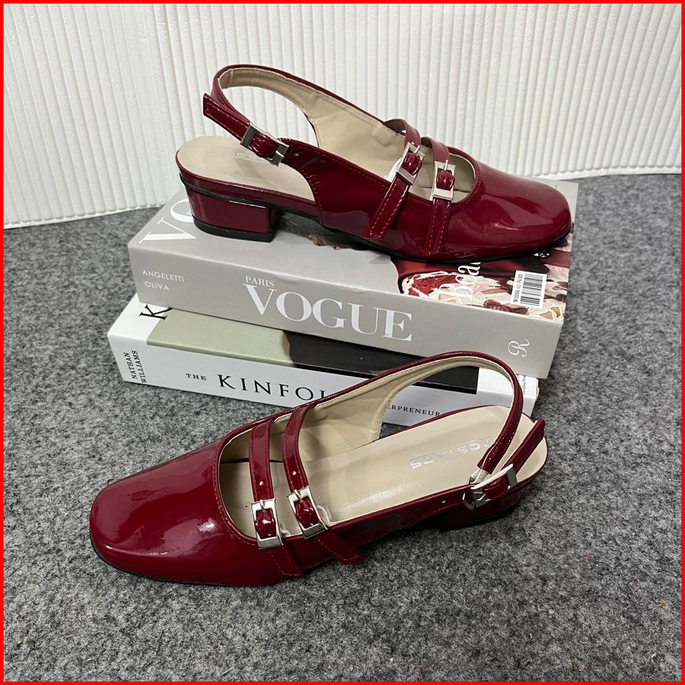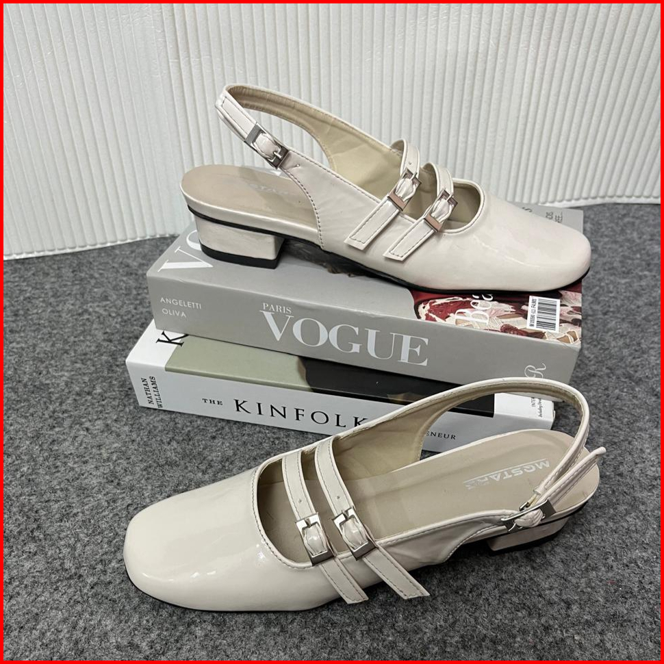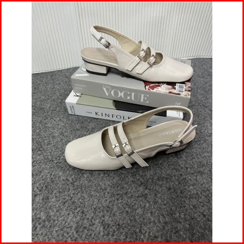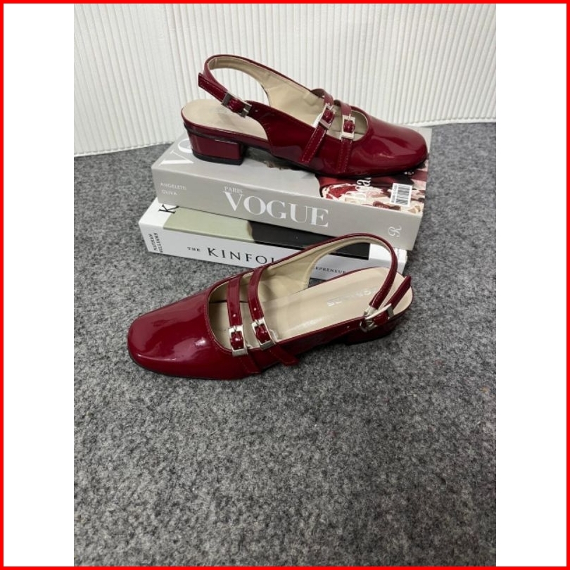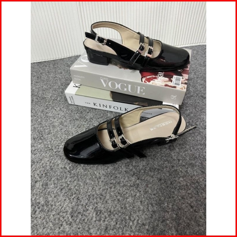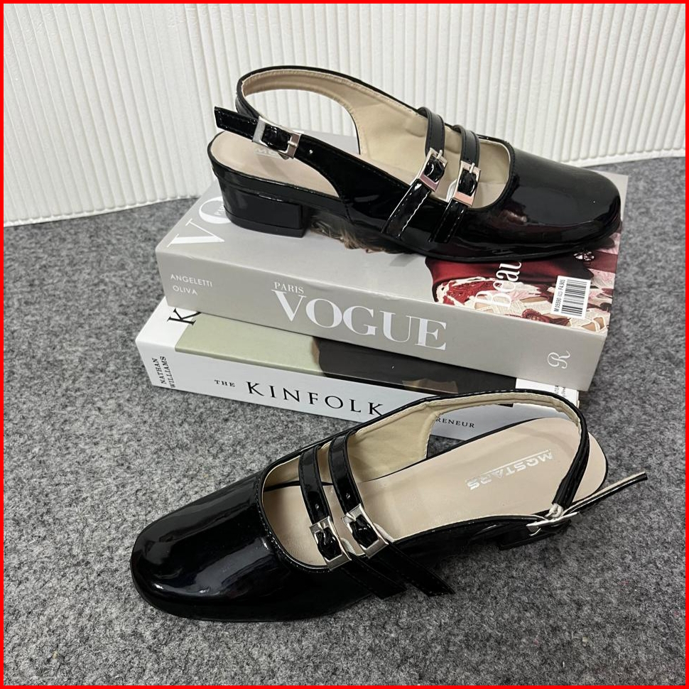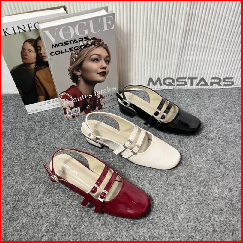 Mqstars Sepatu Mary Jane Slop Wanita Mulestali Gesper Hak 3cm Glossy