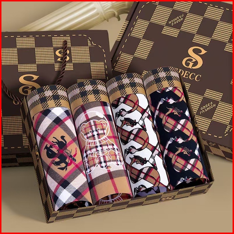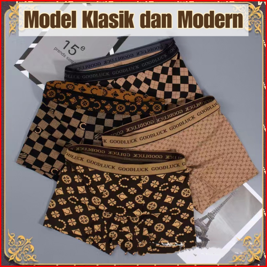 1pcs 4pcs Terbaru Boxer Pria Motif Mewah Celana Dalam Laki Laki Bahan Katun