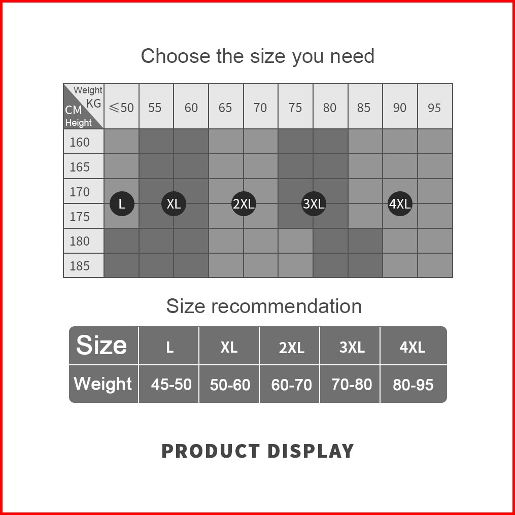 L (45-50kg) - 4PCS, XL (50-60kg) - 4PCS, 2XL (60-70kg) - 4PCS, 3XL (70-80kg) - 4PCS, 4XL (80-95kg) - 4PCS