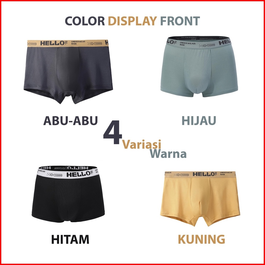 Larunshow Paket 4 Pcs Celana Dalam Pria Boxer Cdp003 Stylist Hello Antibakteri Elastis