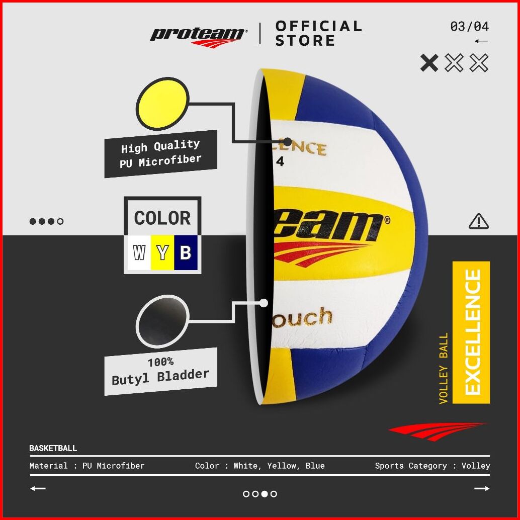 Bola Voli Original Proteam Volley Ball Excellence Bahan Pu Blue-yellow Size 4