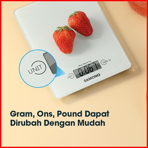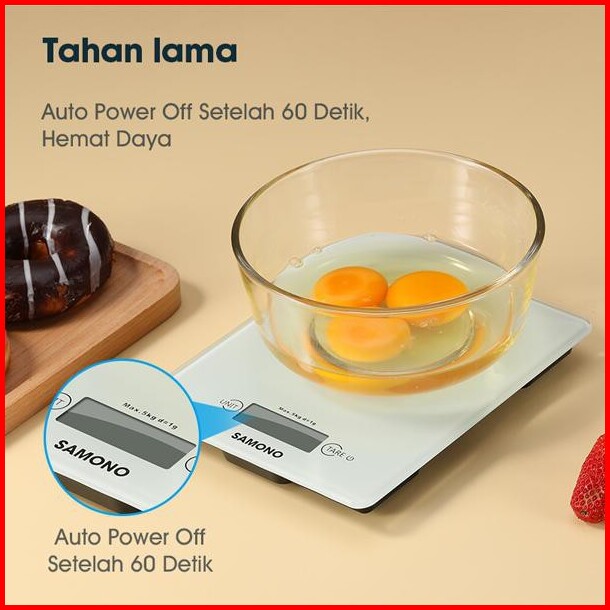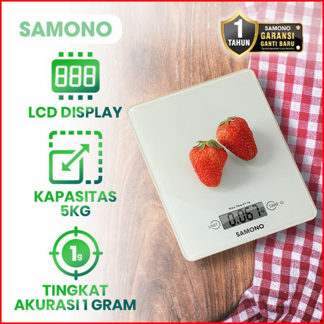 Samono 5kg Timbangan Elektrik Dapur Kaca Digital Lcd Display Tingkat Akurasi 1 Gram Sw-ks02 Putih