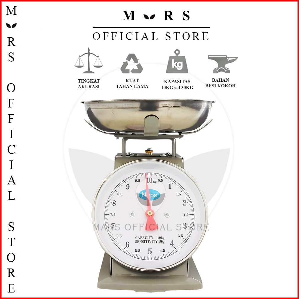 Timbangan Analog Manual Nops Besi Stainless Buah Jarum Serbaguna 10kg 20kg 30kg Mangkok Besi Analog Buah Sayur Daging
