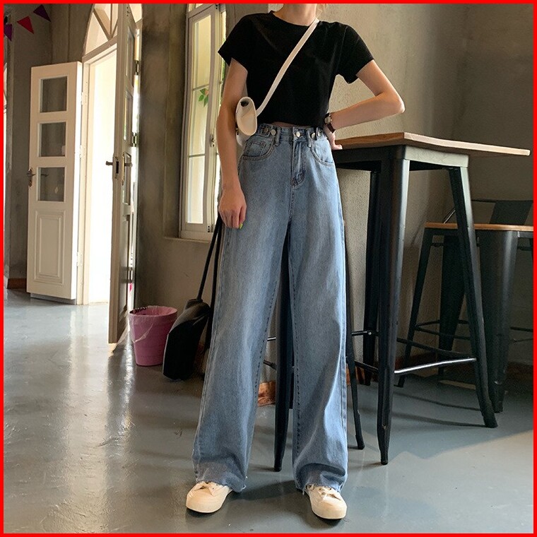 Korean New Women S Loose High Waist Wide Leg Jeans