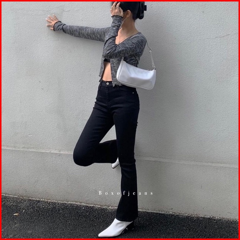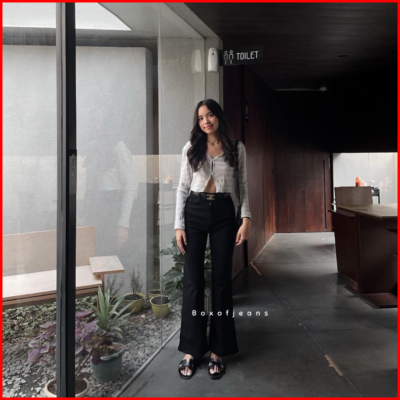 Boxofjeans - Hw Flared Cutbray Jeans - Black
