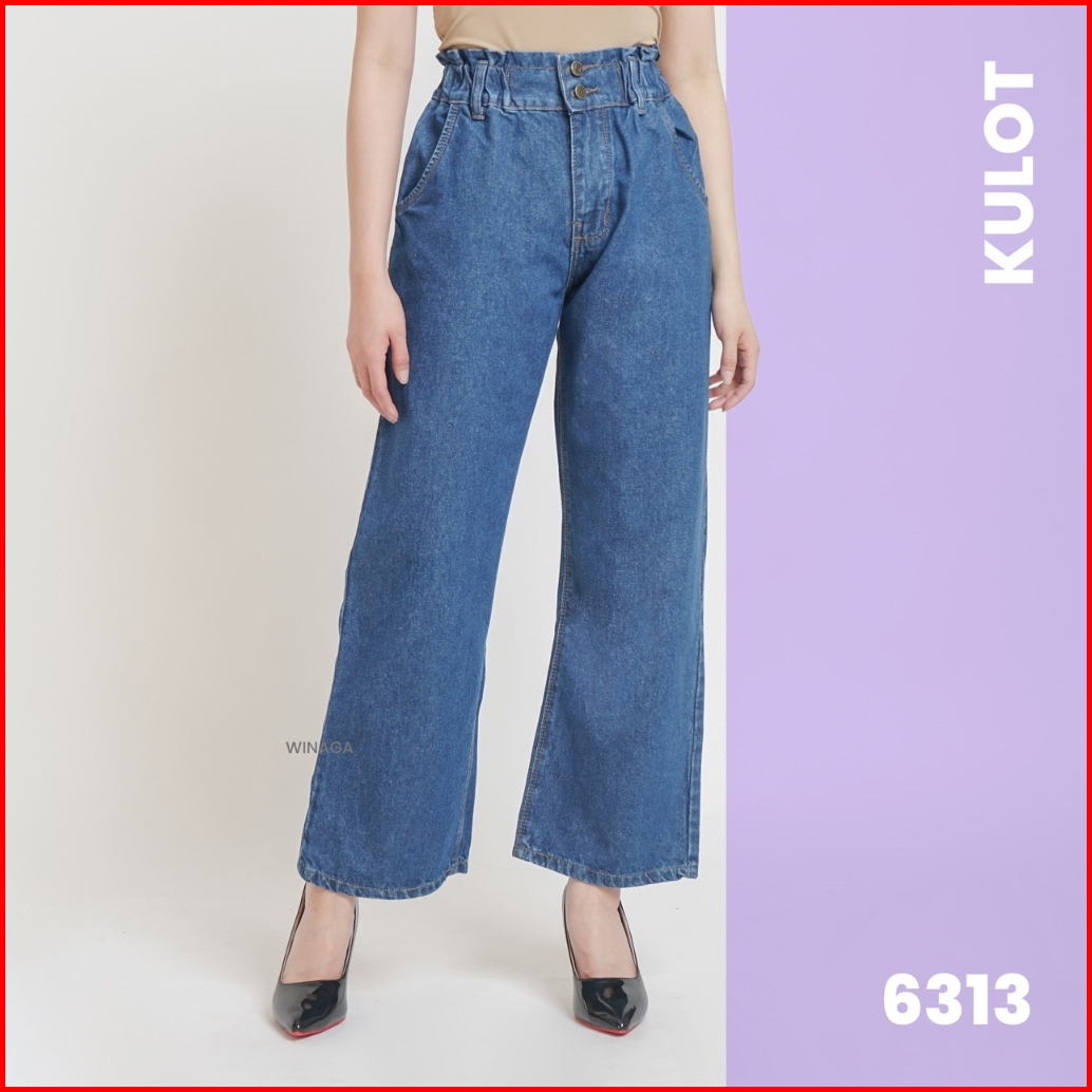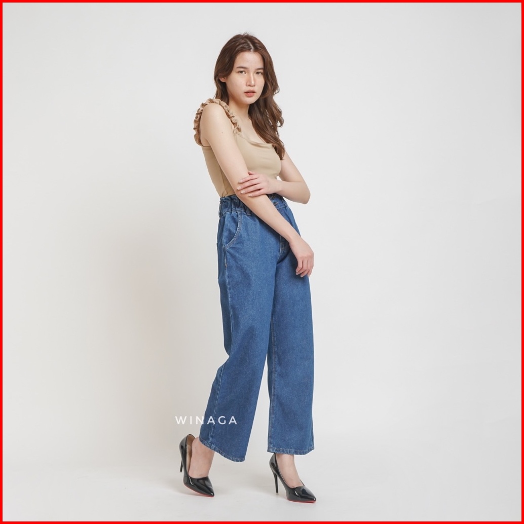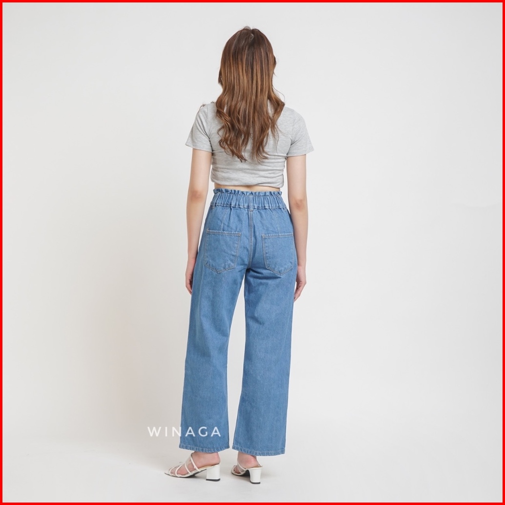 Winaga- Highwaist Kulot Ban Karet Kancing 2 Jeans Kulot Ban 2 Karet Jeans Celana Panjang Kulot Basic Denim Denim Jeans