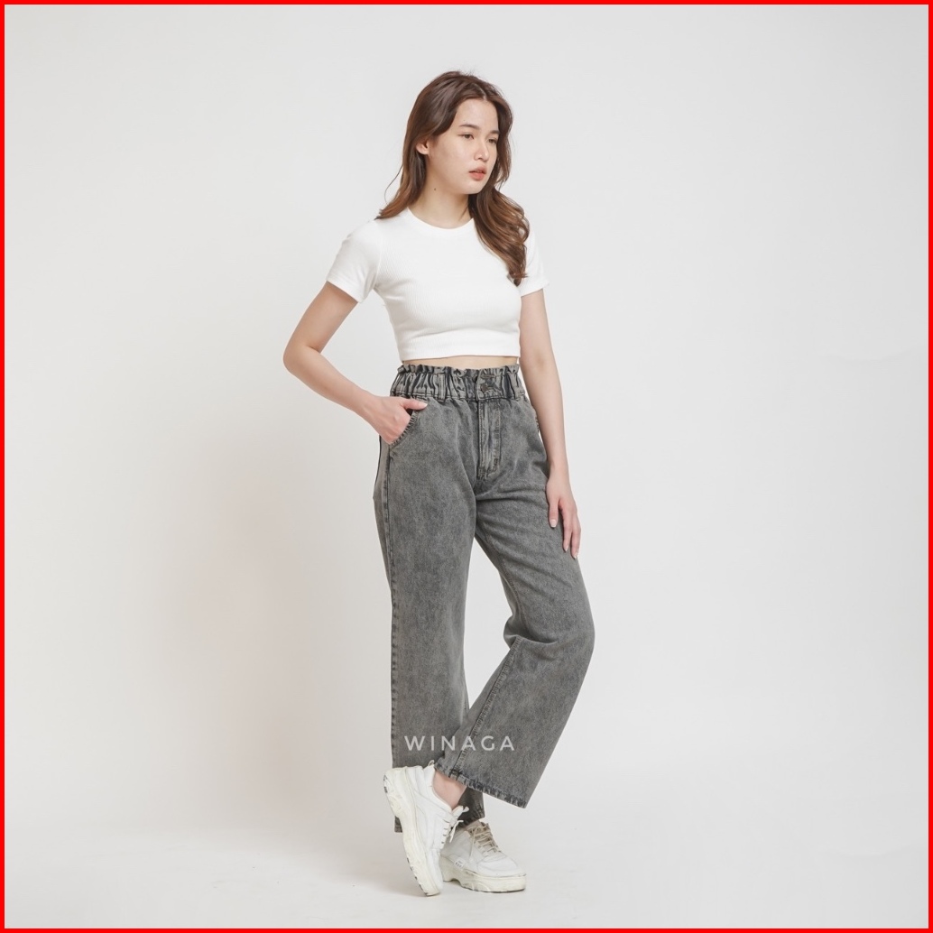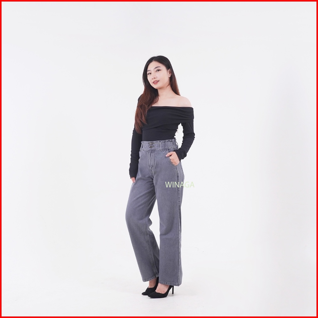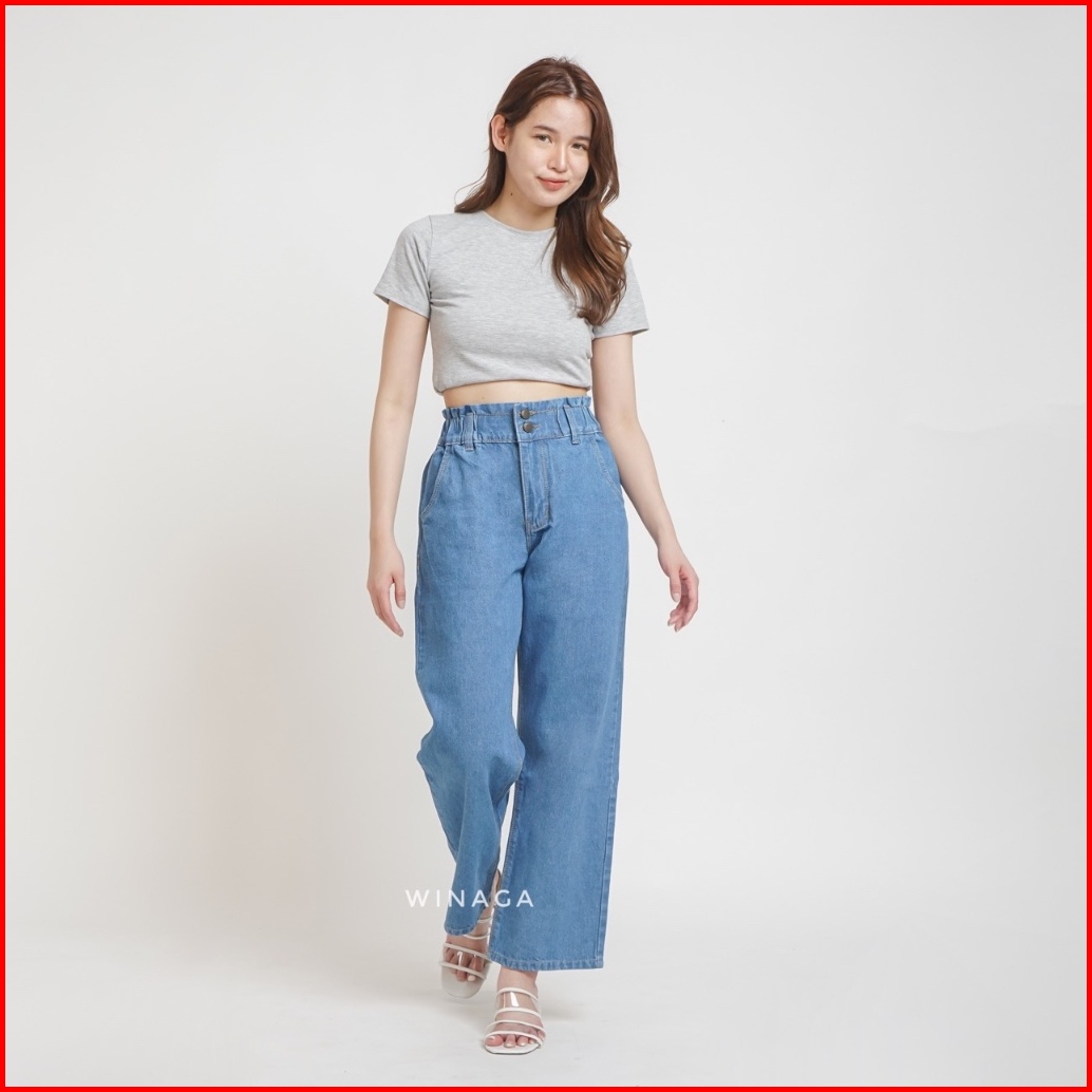 Winaga- Highwaist Kulot Ban Karet Kancing 2 Jeans Kulot Ban 2 Karet Jeans Celana Panjang Kulot Basic Denim Denim Jeans