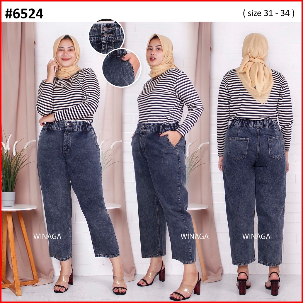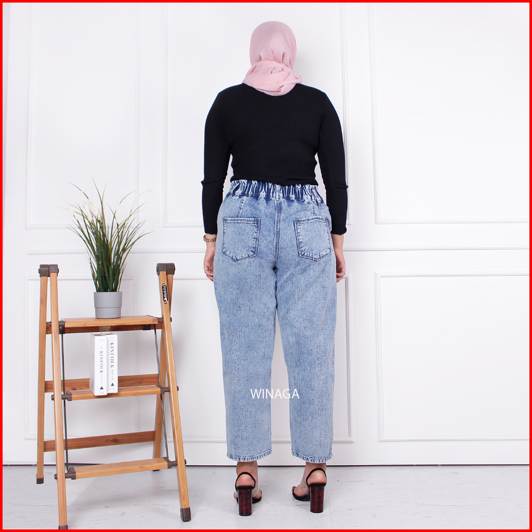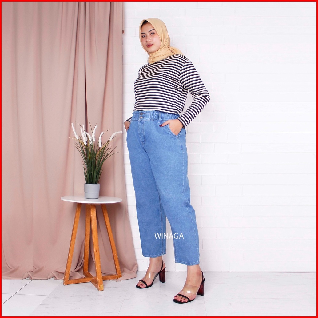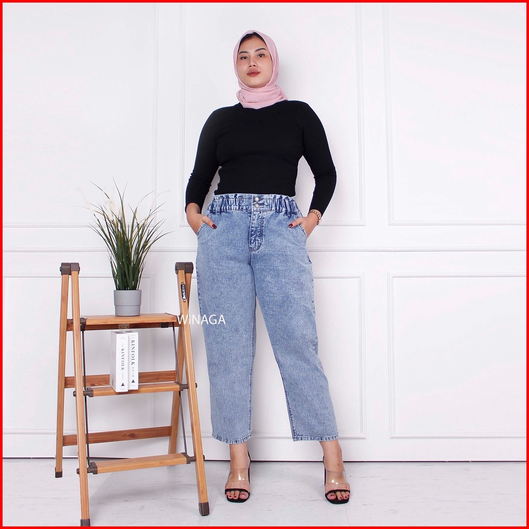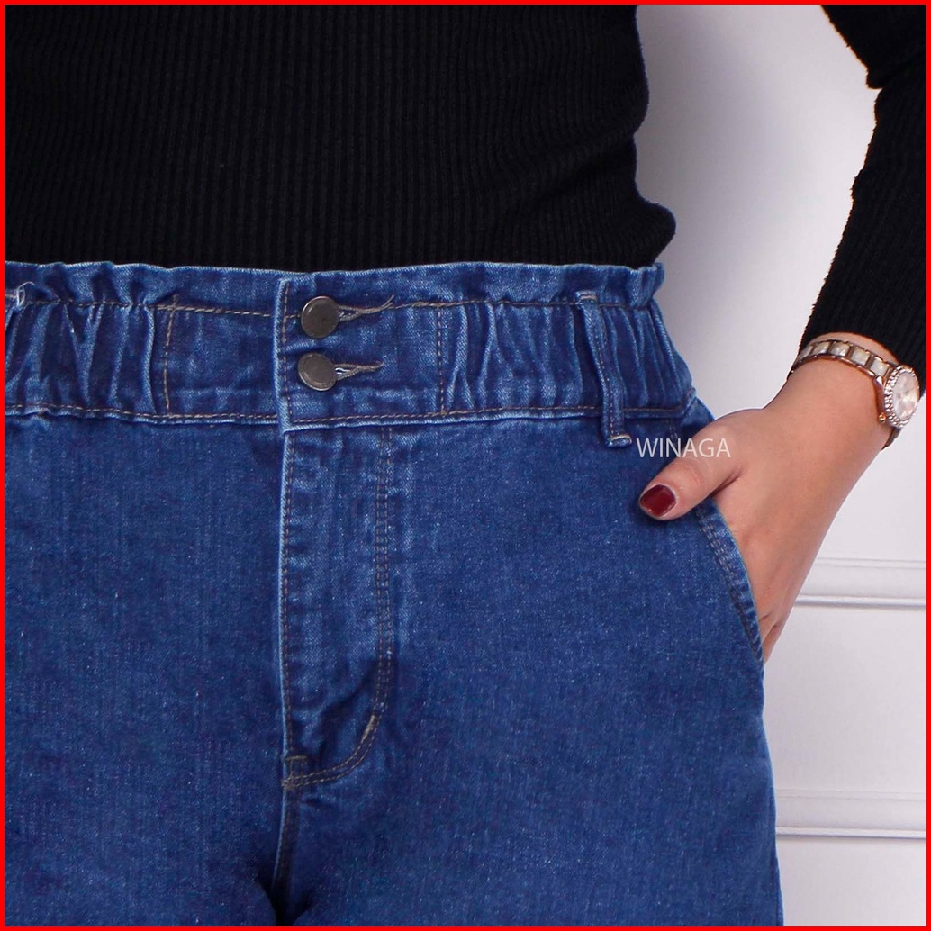Winaga- Highwaist Boyfriend Jeans Jumbo Pinggang Karet Kancing 2