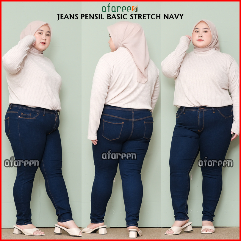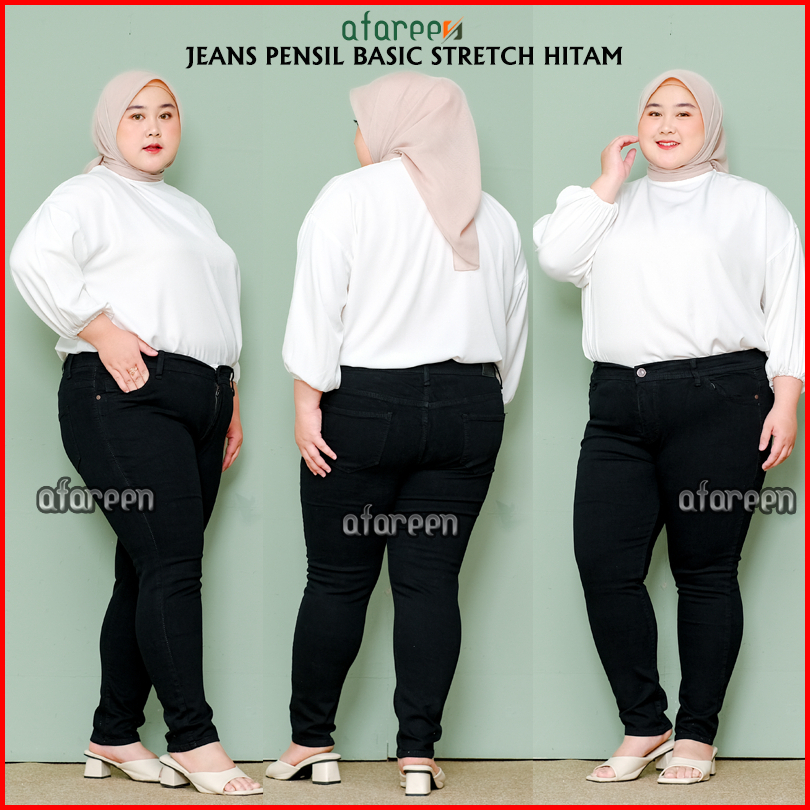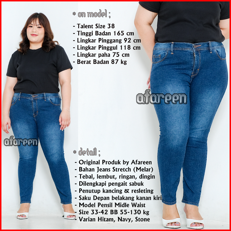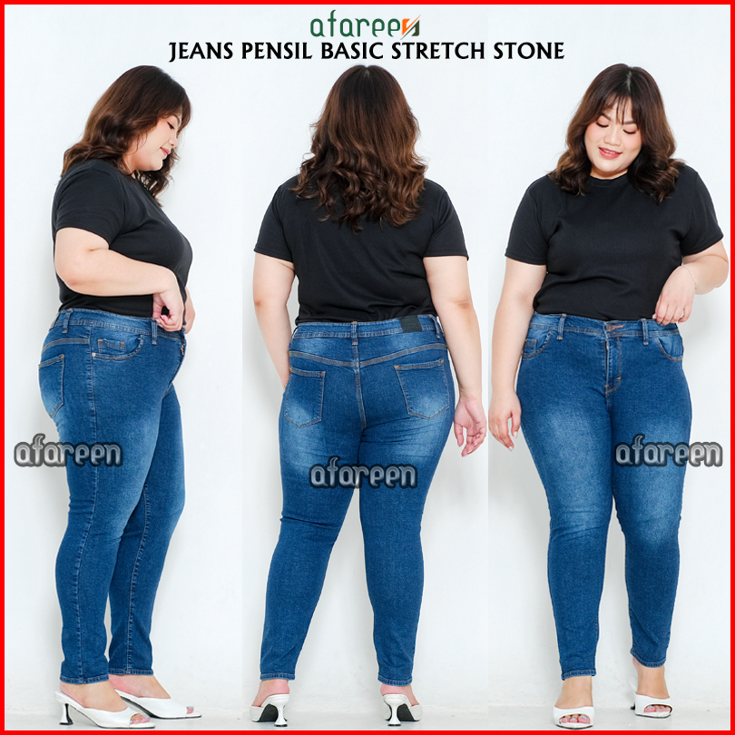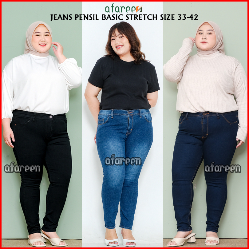Afareen - Celana Jeans Wanita Jumbo Melar Stretch Celana Jeans Skinny Pensil Wanita Big Size 33-42