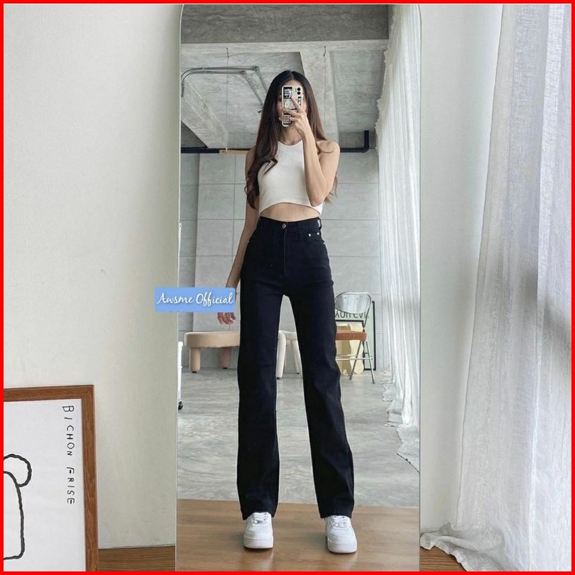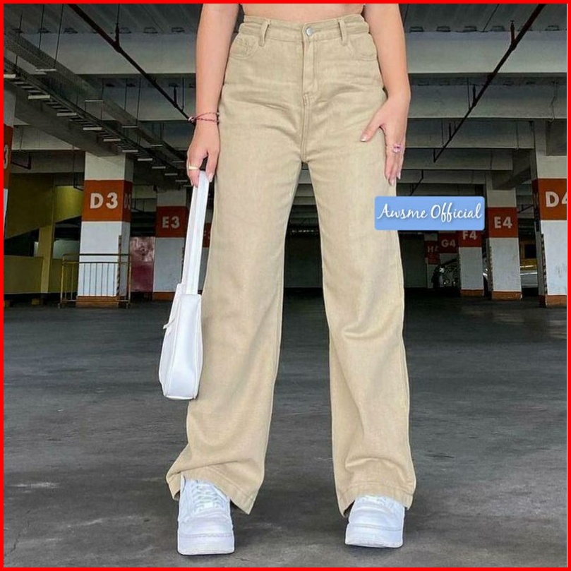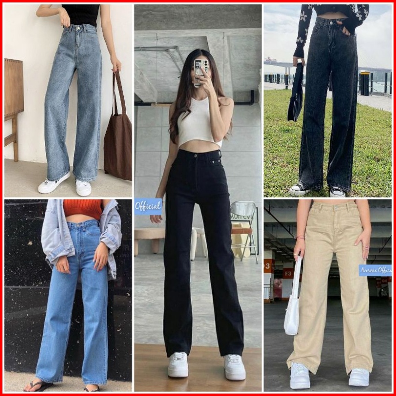 Awsme - Highwaist Loose Jeans Basic Hw Loose Kulot Jeans Celana Panjang Jeans Wanita