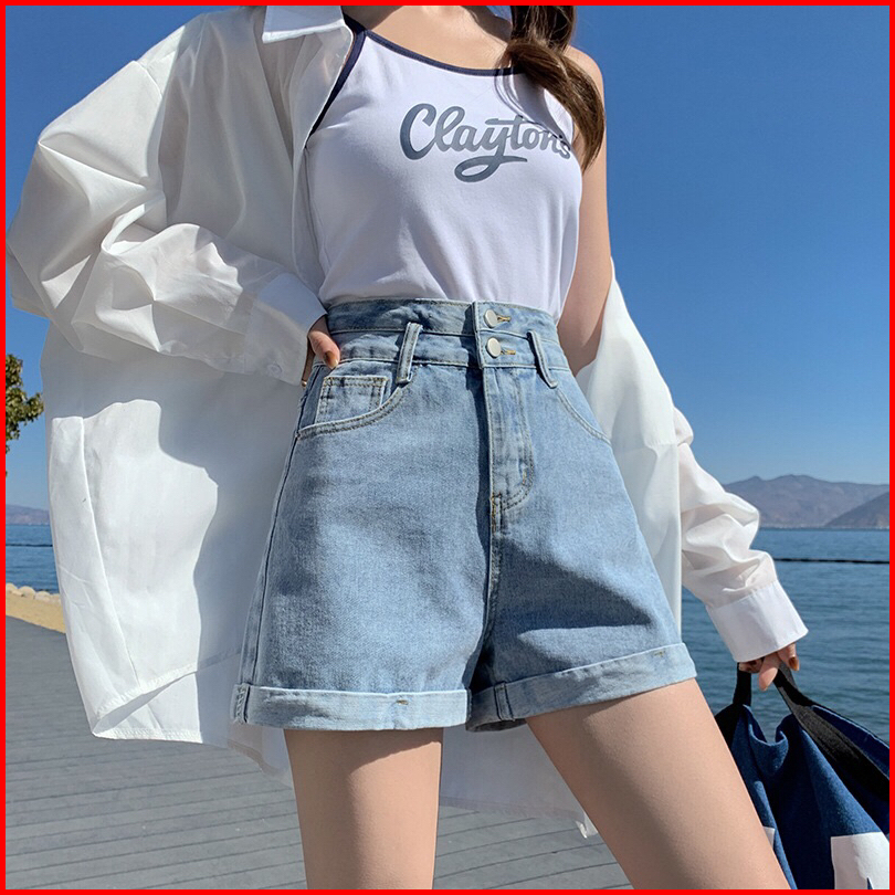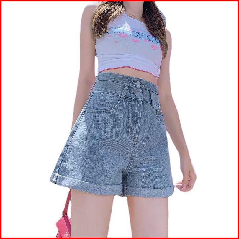 Beevalue Celana Pendek Jeans Wanita Highwaist Dua Kancing Hotpants Highwaist Bahan Premium Celana Jeans Wanita Tinggi Pi