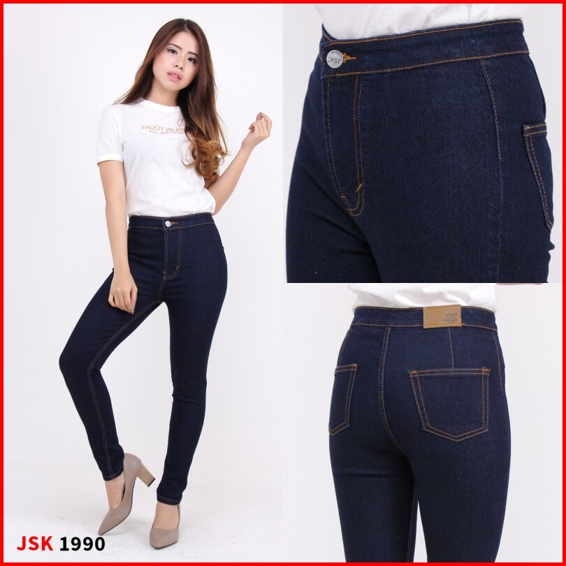 Jsk Jeans - Highwaist Garmen Jeans Wanita Celana Panjang High Rise Dongker 1990