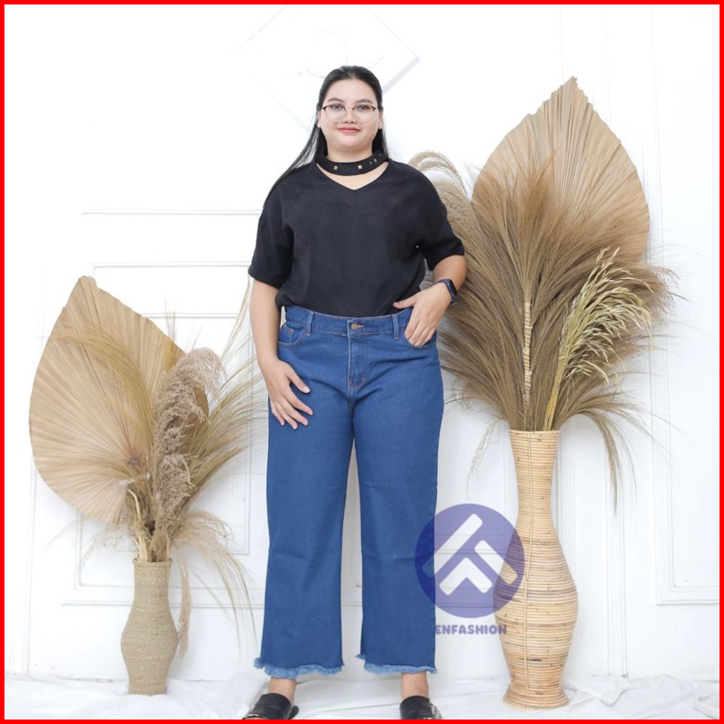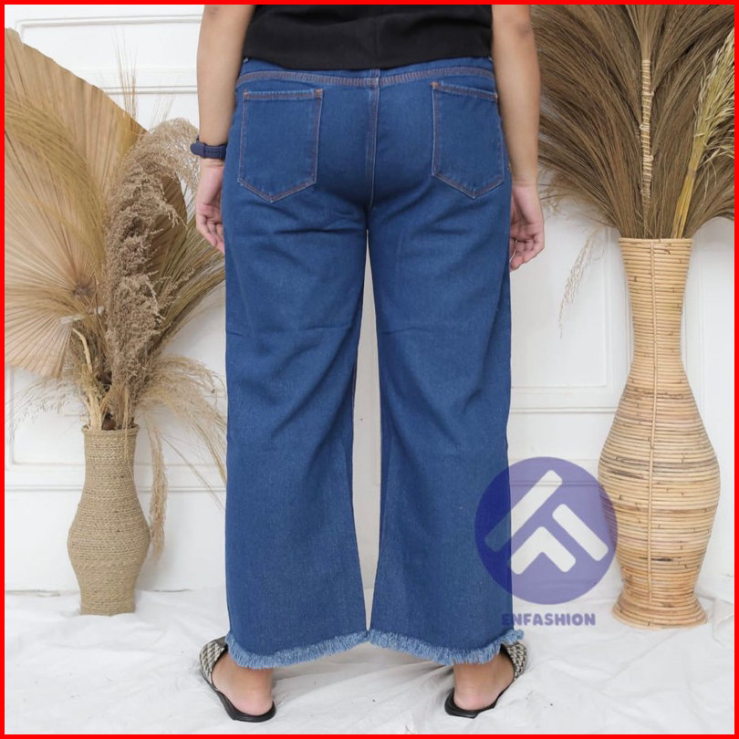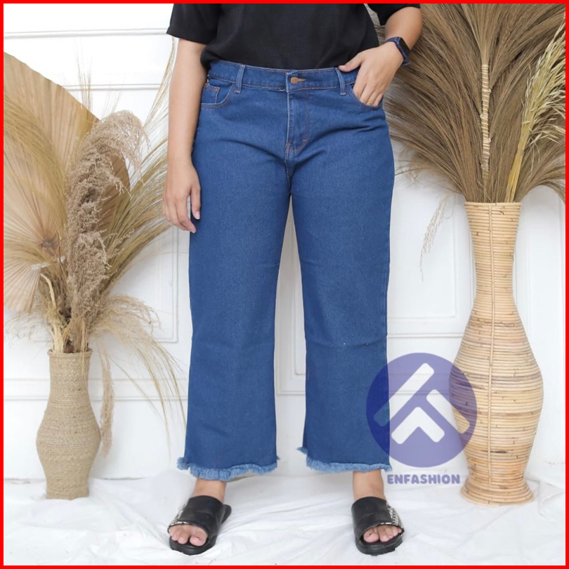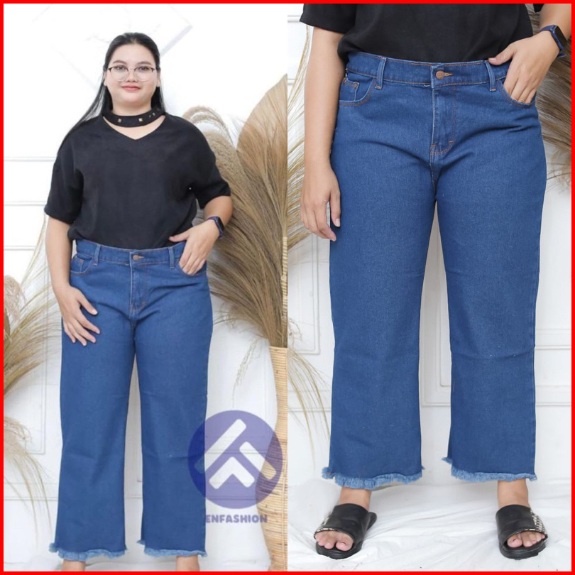 Jumbo Highwaist Jeans Kulot Rawis Wanita Big Size 27-42
