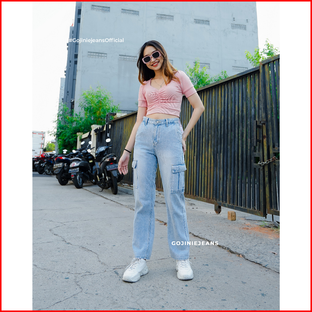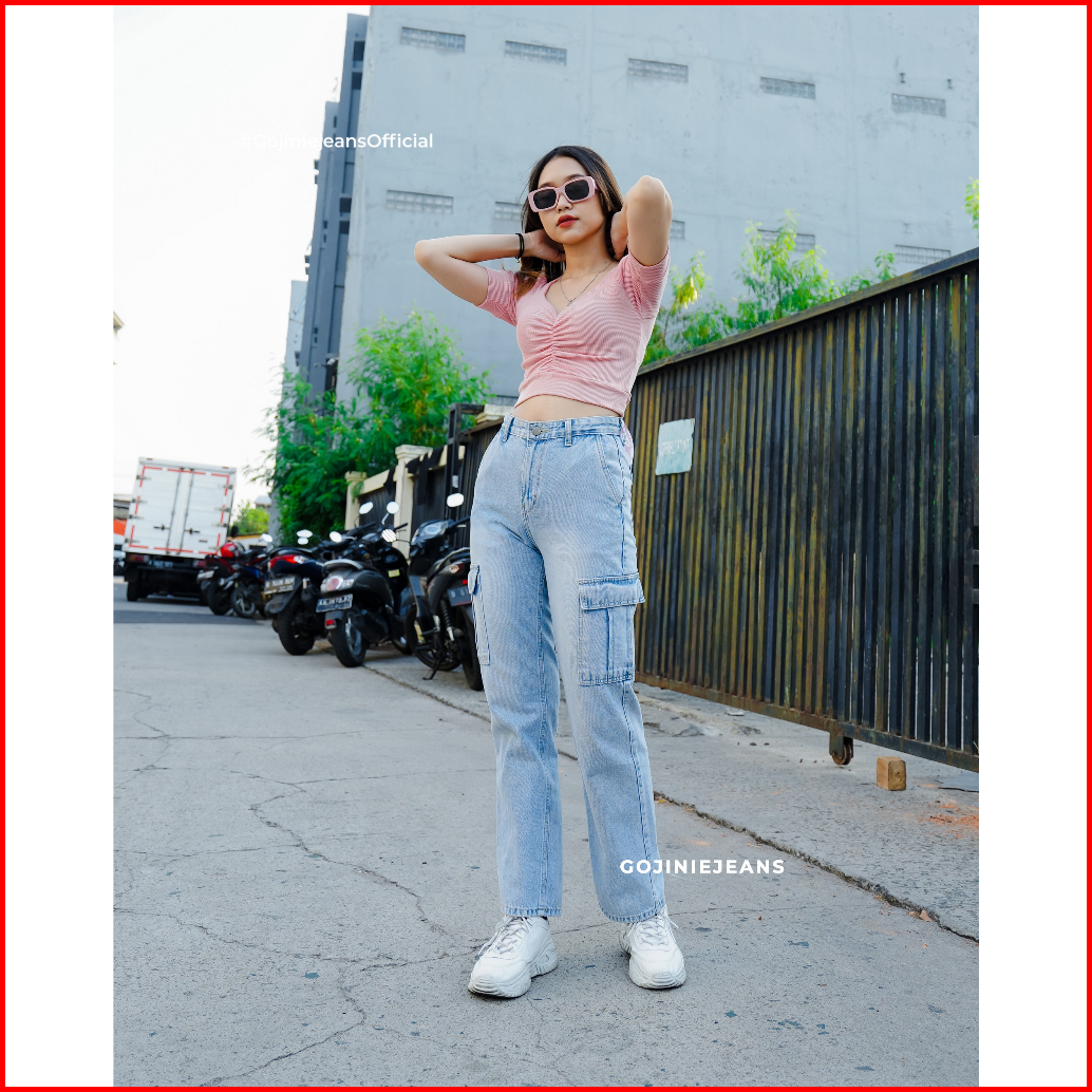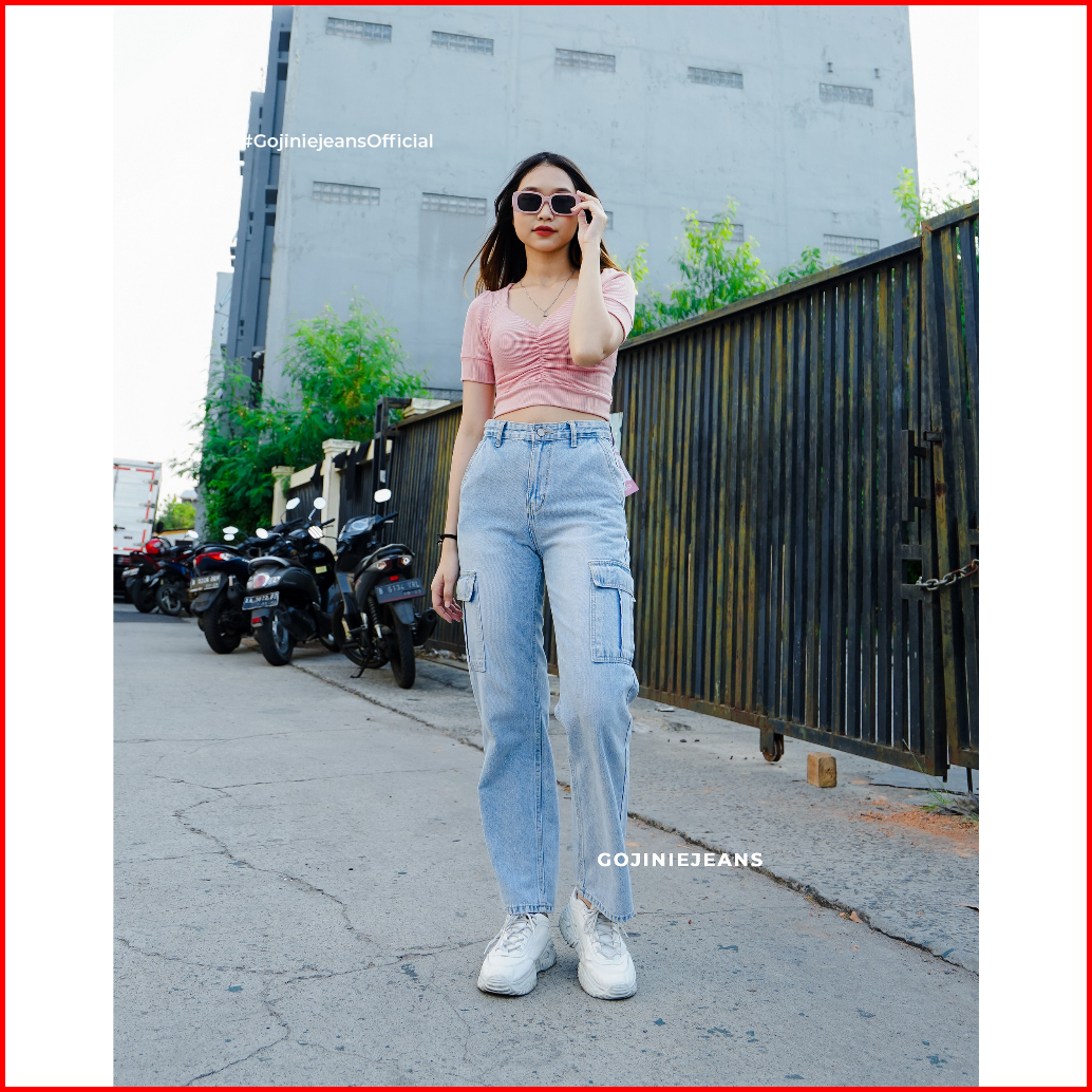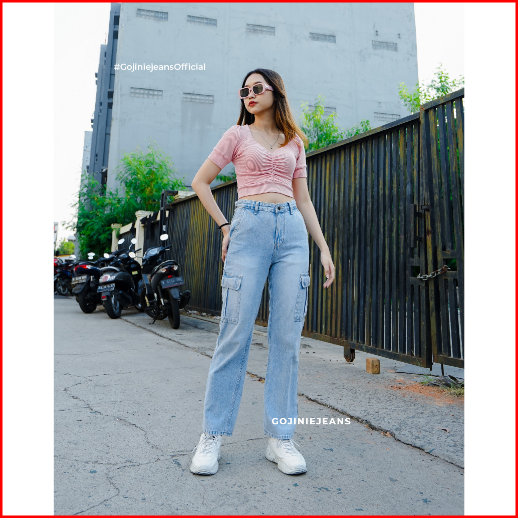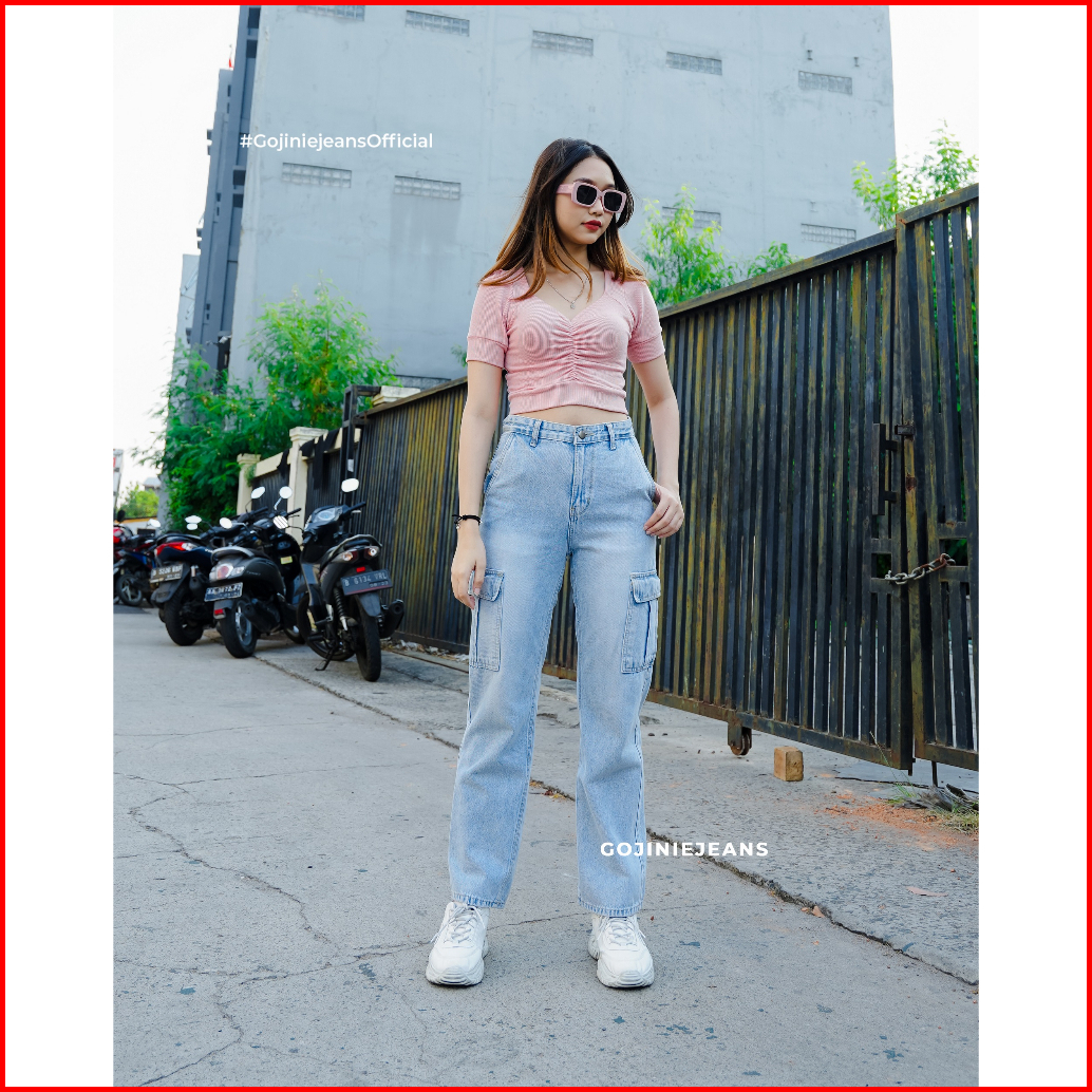 Gojiniejeans - Highwaist Cargo Pants Snow Light Blue - 5067 - Cargo Cool