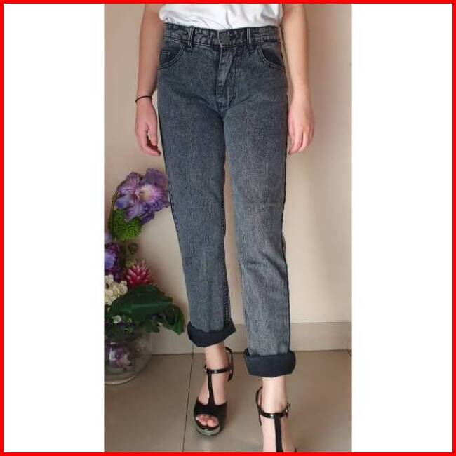 Fwr - 27-34 Celana Boyfriend Jeans Polos Wanita Snow Black