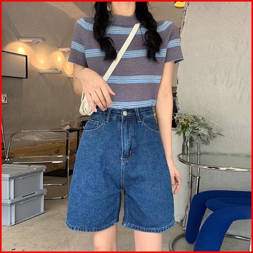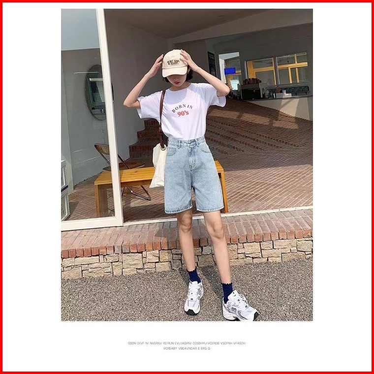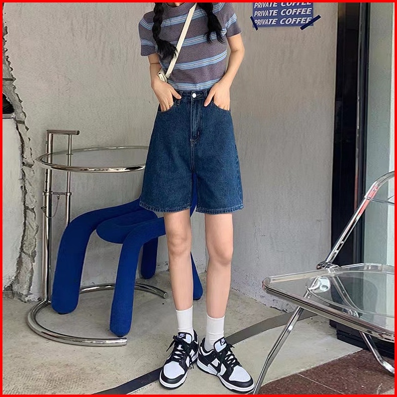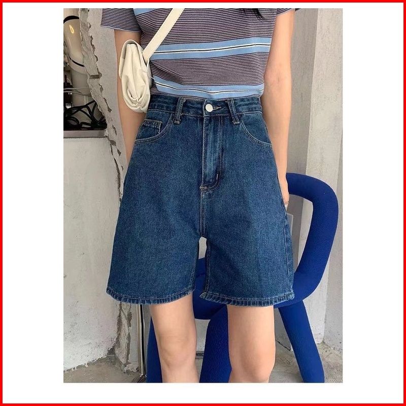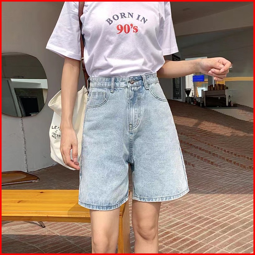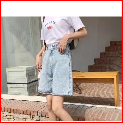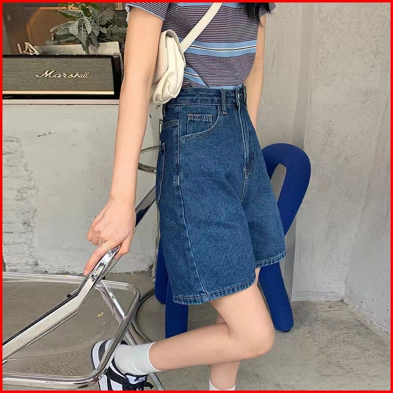 Celana Denim Celana Pendek Longgar A-line Lurus Lebar Kaki Celana Denim Korean Stlye Celana Pendek